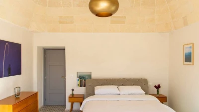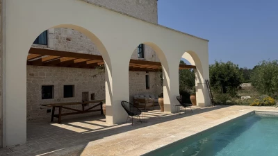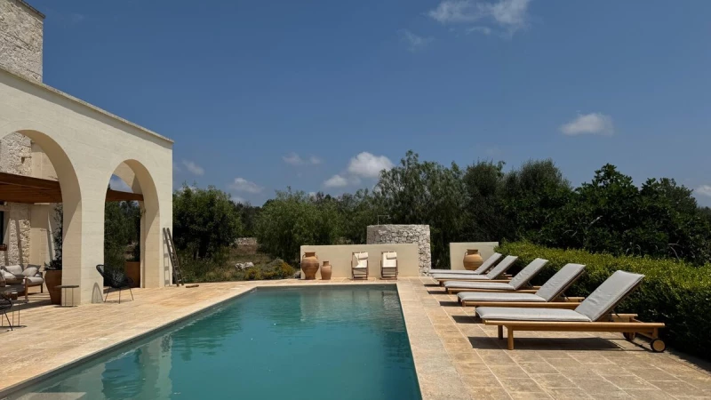 Escape to this peaceful 18th-century casale, tucked away in the heart of Puglia, less than 4km from the charming village of Carovigno and only 16km from the crystal-clear shores of Specchiolla beach. Surrounded by centuries-old olive groves, fragrant pomegranate trees and wild roses, the villa offers a harmonious blend of rustic character and contemporary comfort, an idyllic sanctuary for rest, reconnection, and rejuvenation.