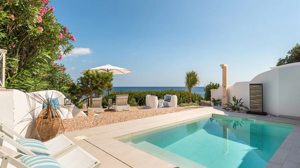 A calm and stylish retreat for two, with panoramic sea views and a private plunge pool overlooking t... -
