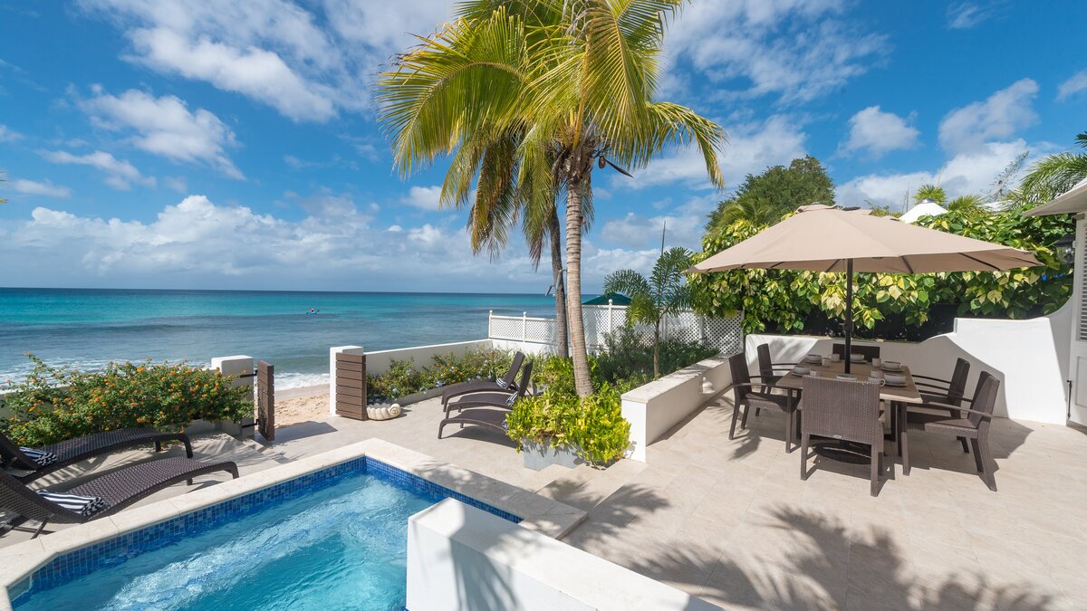 While away the days at this stylish beachfront villa on Barbados' southern coast, a simple beach-chi... -