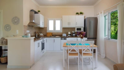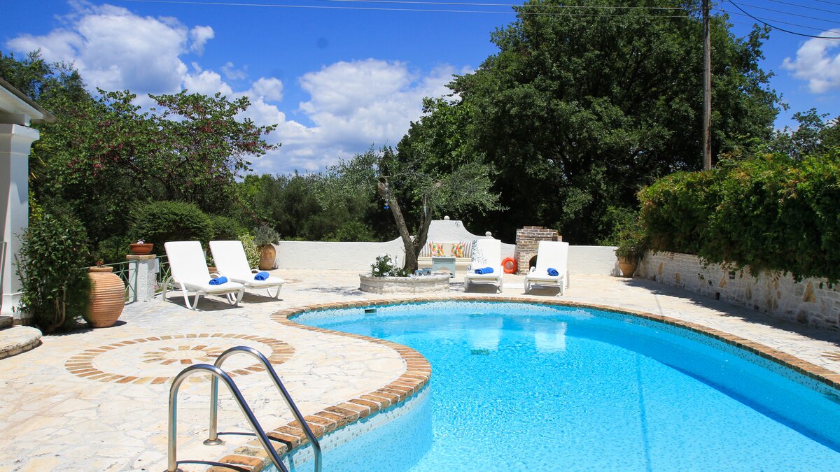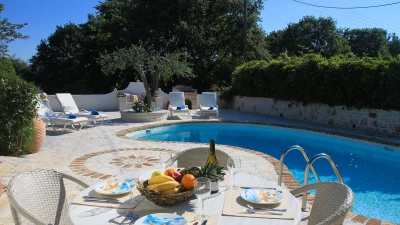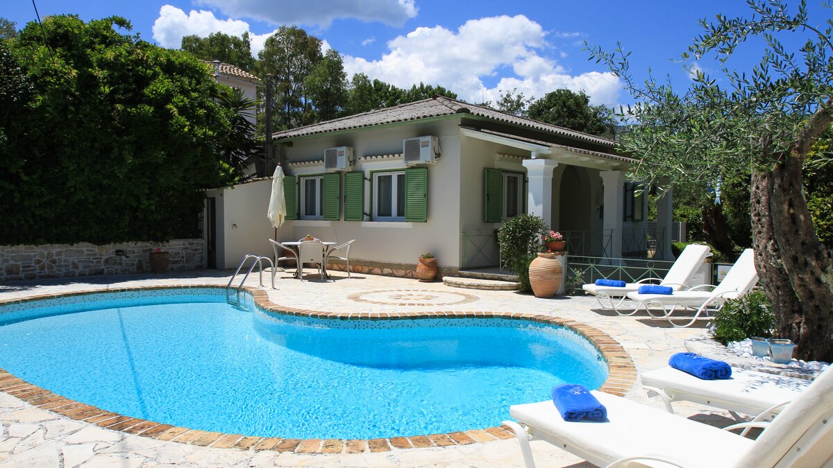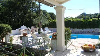 The north-eastern corner of Corfu is renowned for its ribbon of neighbouring bays and beaches, each with its own character and all hemmed by coastal hills. This little villa is within easy reach of the best of them, set in the unspoilt countryside of Coyevinas and moments away from its pebble shore. Within a ten minute stroll, there are tennis courts and beachfront tavernas in Avlaki. Twenty minutes away, Kassiopi adds shops, restaurants, bars and an up-tempo nightlife. And a very short drive brings the beautiful harbour of St Stephano into view. Simply styled for comfort, the villa has two air-conditioned bedrooms and a combined living/dining room, and lends itself to outdoor living with a pretty veranda and an eight metre swimming pool. Furnished for lounging and al fresco dining, the poolside terrace is also home to a built-in barbecue. Usually fairly undisturbed, in July there is a church-run summer school nearby and the children can be heard enjoying themselves, often until quite late in the evening.