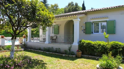 A popular little family villa in Corfu, set in gardens of lawns and trees, this unpretentious and pretty house is a short stroll from the beach and tavernas, and close to a choice of resorts.
