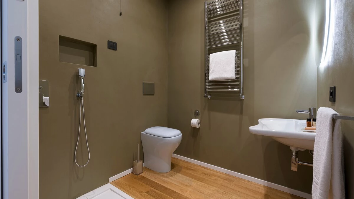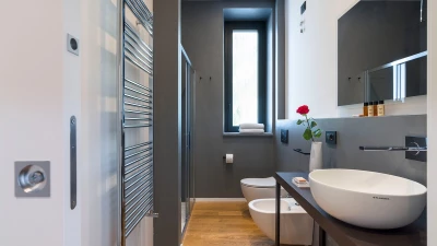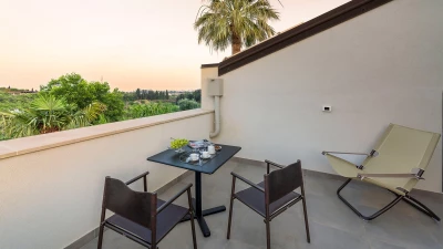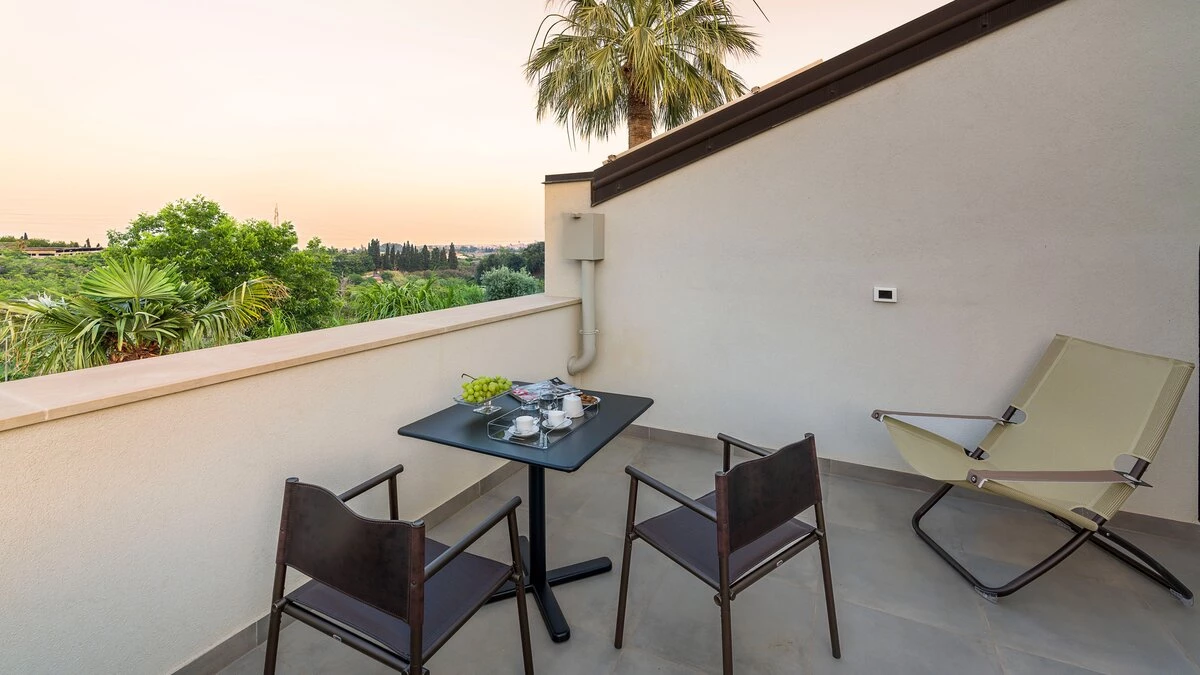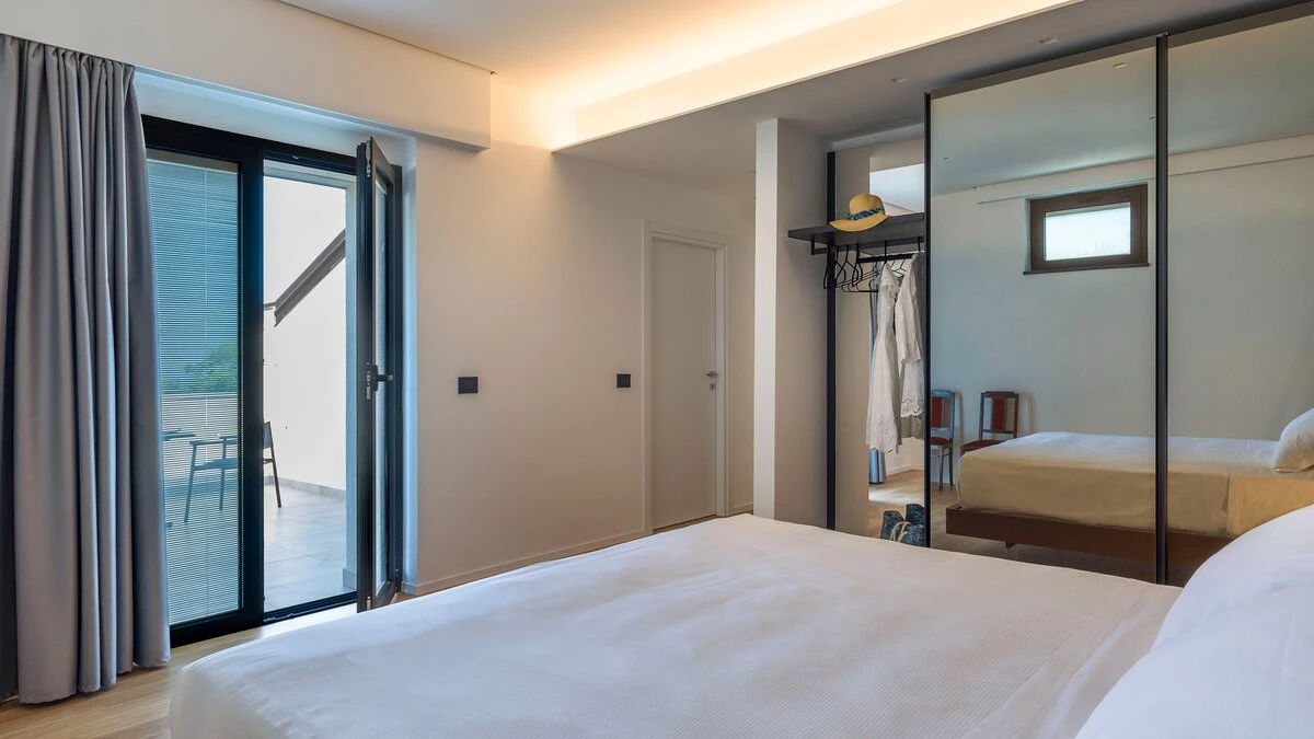 As you make your way up the wooden staircase, you will approach a beautifully designed mezzanine where you can enjoy the comforts of a lounge area, complete with a smart TV. This floor also has two double bedrooms each with an en suite shower room and terrace. An additional two double bedrooms are located on this floor with a shared shower room.