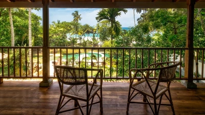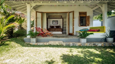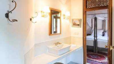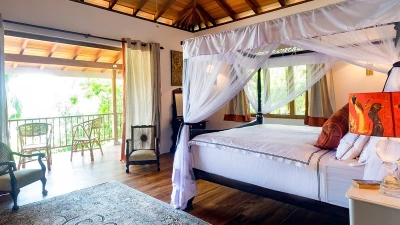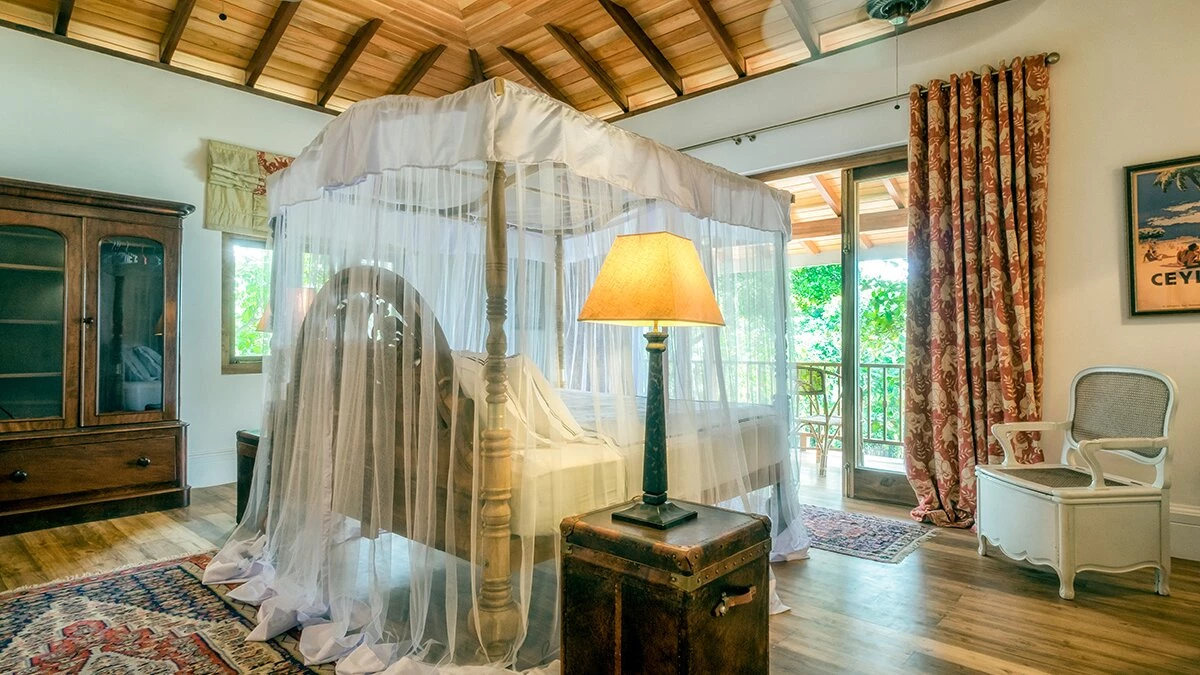 Moonstone is a very special house that promises fun for all ages, with private access to a sandy beach. Thoughtfully designed and beautiful decorated, the villa sits at the top of an extensive tropical garden, with panoramic ocean views. Generously equipped with all the mod cons, there is a magnificent open plan sitting/dining room with breakfast table, and a further dining table on the spacious veranda. A spiralling teak staircase from the beautiful entrance hall and the sitting room leads to six bedrooms within the main house, made up of three master suites with four-poster beds, two twin rooms and a mega bunk room sleeping up to 6 children; the seventh bedroom is housed in the lovely Garden suite.