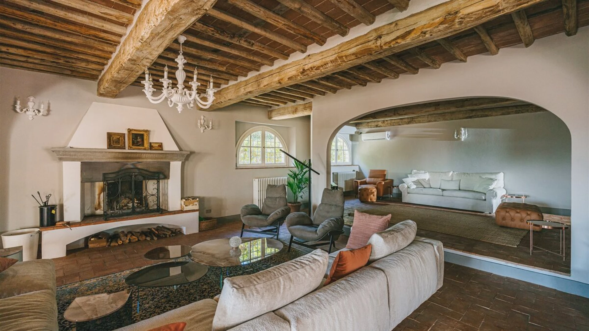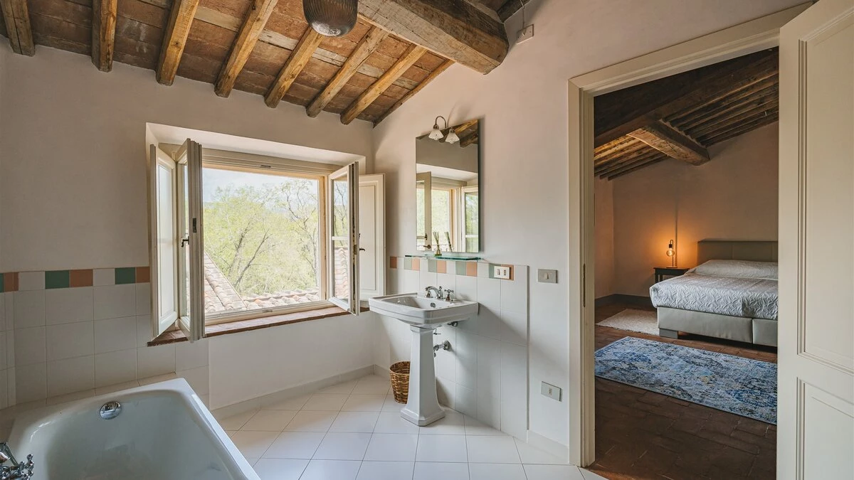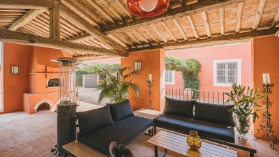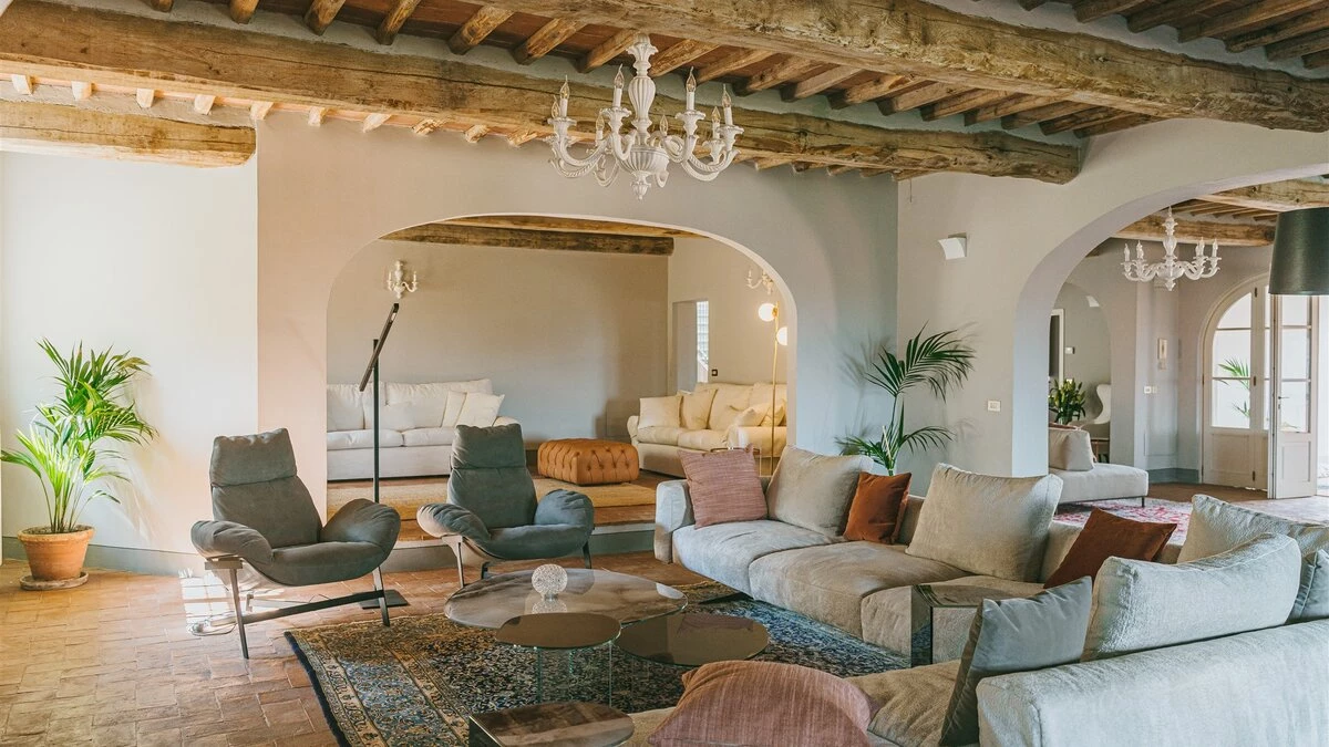 A pretty pink villa, privately positioned amid manicured lawns and mature trees, this charming house is the result of impeccable restoration. Formerly the farm buildings of an important historic estate, Novedieci now offers cool, comfortable and contemporary interiors beneath its chestnut beamed ceilings, seamlessly blending the old and the new with a well-equipped gym, WiFi, and flat screen televisions. Chic, spacious and uncluttered, the main house has a study, TV room, and a delightful open-plan living space with kitchen, dining and sitting areas. Each of the eight bedrooms is beautifully simply styled, all eight fitted with air-conditioning, and most with en suite full bath and separate shower.