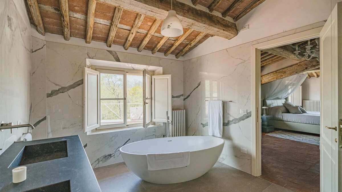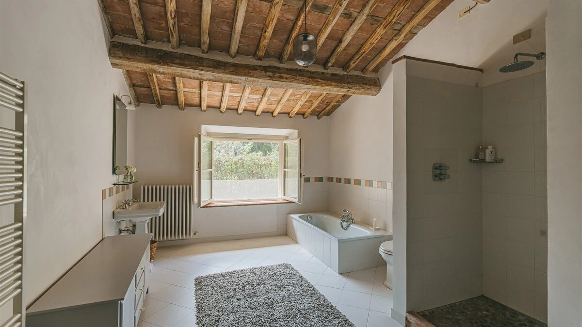 A similarly high spec barn conversion forms a guest annexe for up to four, with its own sitting room, dining kitchen and open terrace. A large covered terrace is perfect for al fresco dining, made even more attractive with (optional) cook service. And there is a swimming pool within the garden with ample space for children to play. The villa is within very easy reach of Lucca, Pisa and the coast. A perfect choice for a special celebration.