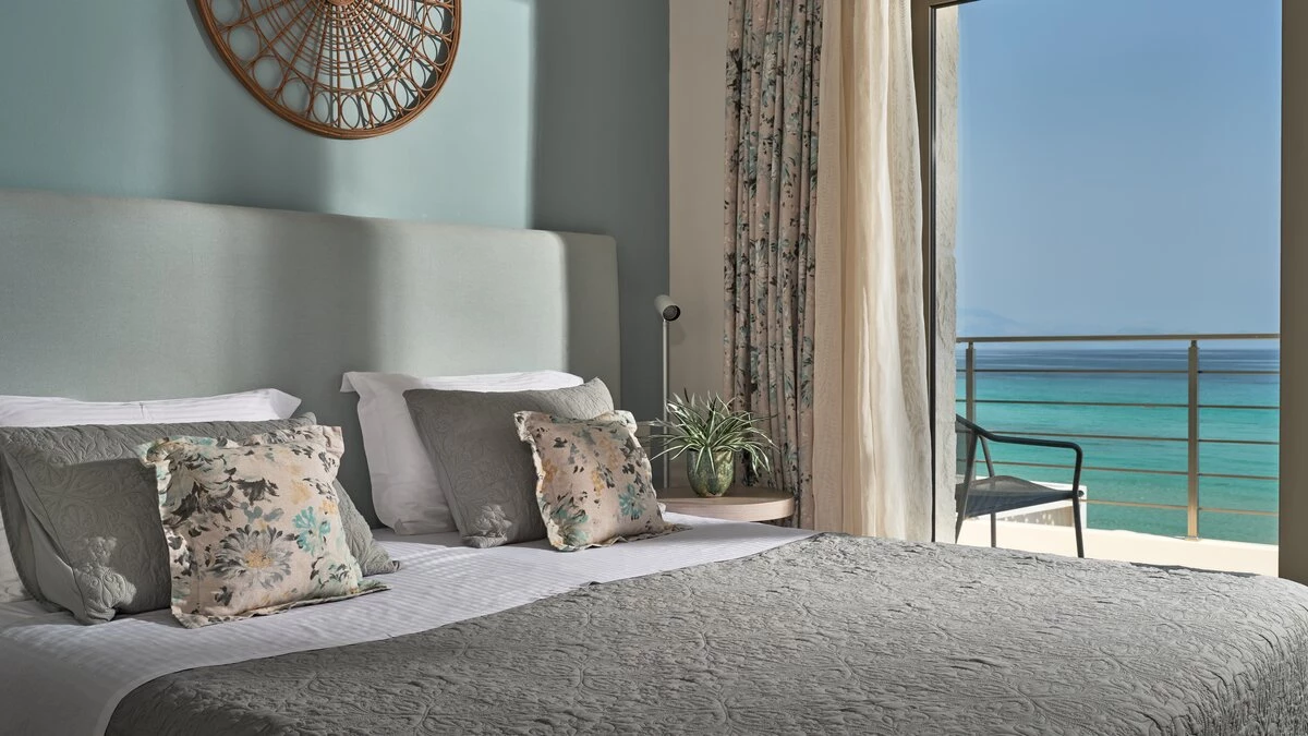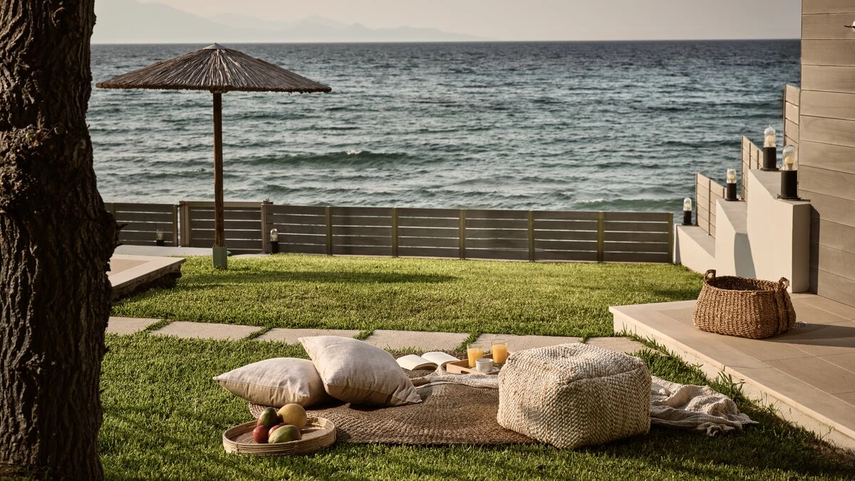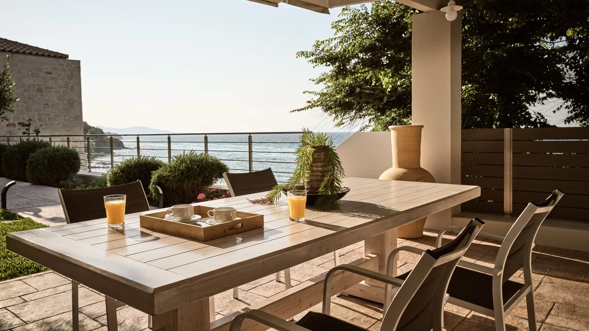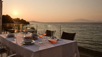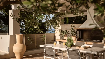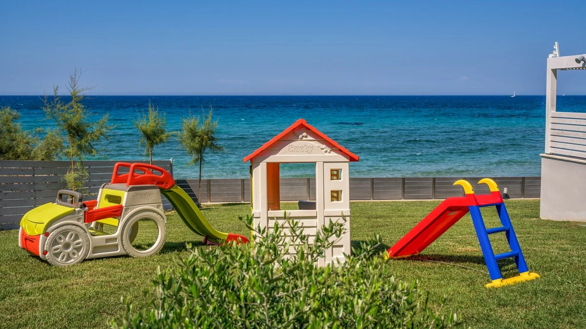 Indulge in complete relaxation at this lovely beachfront villa in Tragaki, found beside a quieter golden stretch of Ampula Beach. A gorgeous stone exterior instantly attracts attention; contrasted against the deep rich blues of the Ionian seascape behind, this villa is a serious eye-catcher. You're just a five-minute drive from the shops and supermarket of nearby Tsilivi, but it's all about the glorious sense of peace and tranquility here. Positioned just steps from the sand, the oceanfront infinity pool drinks in sensational views of the Peloponnese coastline and Kefalonia Island. This is the place to just flop and unwind - there's loungers and shaded spots for seriously lazy days, plus a children's play area, Jacuzzi and bar area for the best sunset-accompanying aperitifs. The villa inside is a stylish combination of contemporary design and traditional architecture, with muted but neutral hues making this an elegant space to escape into. The villa's entrance is on the first floor and leads into a large open-plan lounge complete with a dining area, cosy living room and fully-equipped kitchen. For the hot and humid Greek summers, there's another good-sized dining table on the oceanfront terrace. There are four spacious bedrooms within the main villa - three of which are downstairs on the ground floor. Each one includes a private en suite shower room, and also access to a separate veranda overlooking stunning views of the sea. Adjacent to the villa, a self-contained studio includes a fifth double bedroom, private shower room and a small kitchenette.