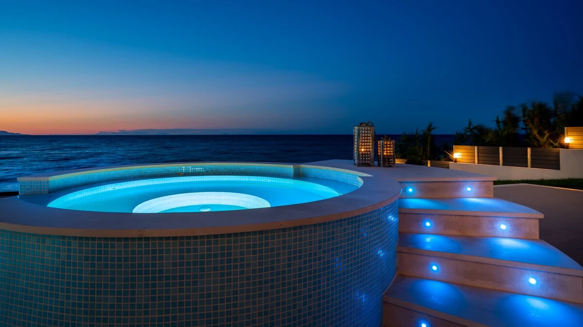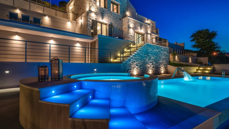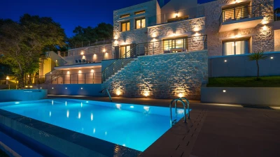 With its own pool, spa and fitness room complementing contemporary comfort, this luxury villa in Cre... -