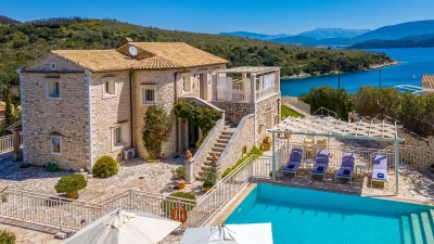 A wonderfully comfortable luxury villa in Lefkada, with magnificent sea views from its secluded seaf... -