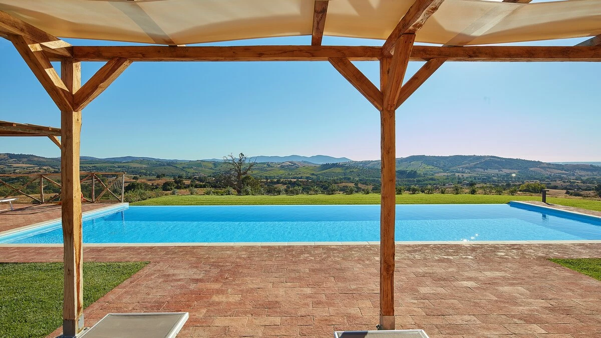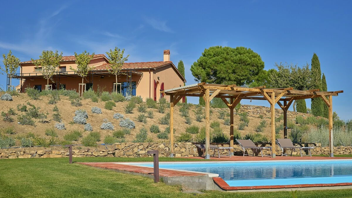 Outside the villa, guests will discover a lovely pool paired with two shaded pergolas. The villa is surrounded by unspoiled rolling hills, a truly serene location. Amenities can be found 10km away in either Istia d’Ombrone or Grosseto, the latter of which is home to a convenient train station. Nearby places of interest include the stunning Uccellina Natural Park and the Natural WWF Oasis of Orbetello, where visitors may even like to enjoy an afternoon horseback riding. Poggio Morellino is just 20km from Marina di Alberese beach, with other beaches accessible at Principina a Mare or Castiglione della Pescaia. Florence Airport is a 161km drive away.