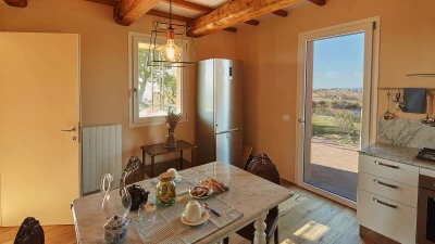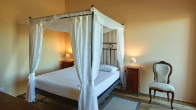 Located just ten minutes from the historic town of Grosseto, Poggio Morellino is a spacious and elegant villa in the Tuscan countryside. This property boasts extraordinary panoramic views, with Elba and Corsica even visible on a clear day. The interior of this property is stylish, dotted with fabulous works of art, ceramics, prints, paintings and drawings. On the ground floor, guests will find a warm-hued open plan sitting room with dining area, complete with antiques, large windows to make the most of the views and doors to the gardens. Three bedrooms can also be found on this level, two twins and one double. Each room features a bath or shower room en suite. The first floor features the master bedroom with a bathroom en suite and additional single bed located in an alcove under the eaves, suitable for a young child.
