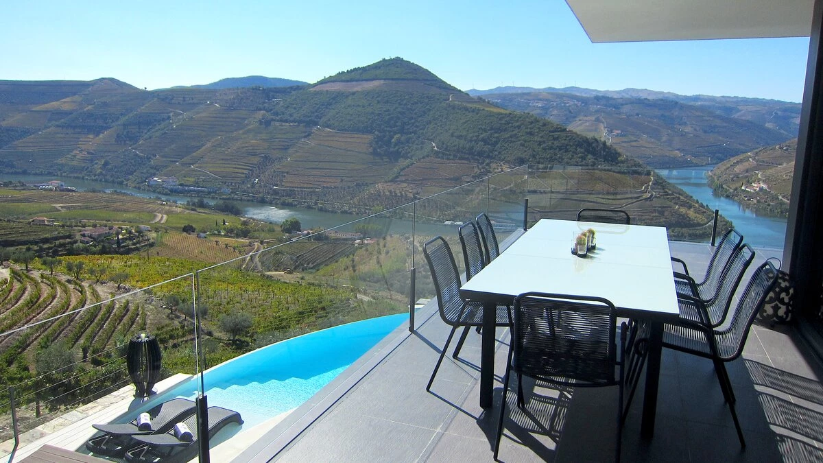 A lavish rental villa with spectacular views, infinity pool and Jacuzzi, perched high above Pinhão.