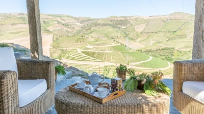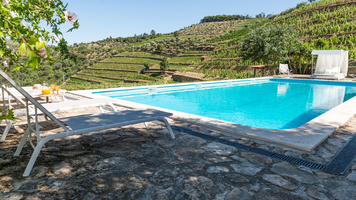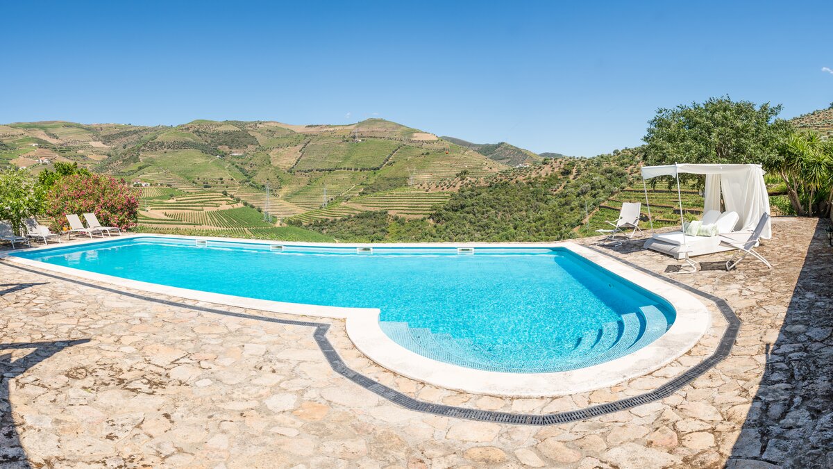 Carved terraces of vineyards and olive groves surround this luxury villa in Portugal. Peacefully placed in the hills of the Douro Valley, it is perfect for a family get-together.