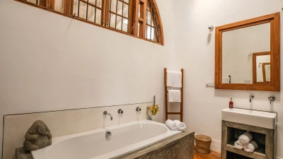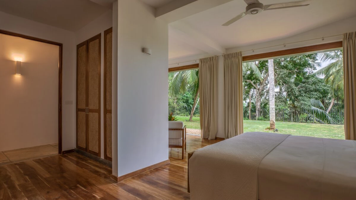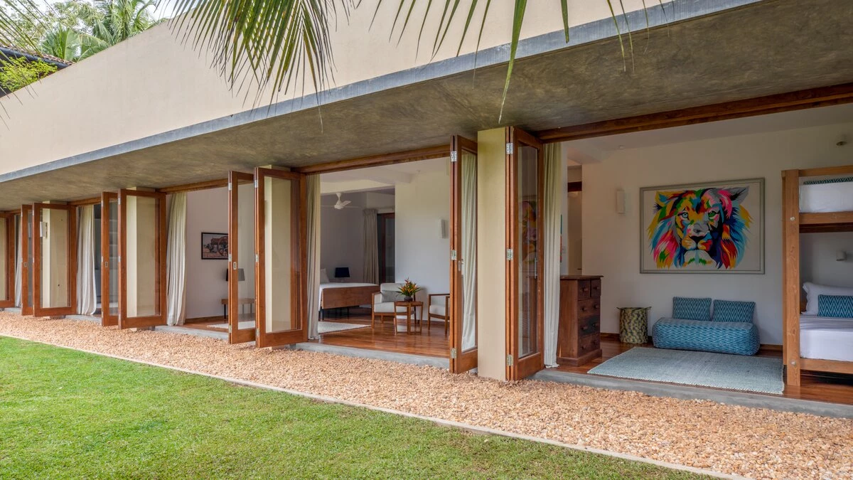 Outside, the floodlit hard surface games court provides the perfect spot for guests to play a game of football, cricket, badminton or basketball. The large swimming pool sits before the main house, overlooked by a poolside dining pavilion, perfect for evening meals at home. The garden house hosts a state of the art gym and massage room. Nearby several shops and restaurants can be found in Galle, as well as in the local area. The nearest airport to the villa is just a 90 minute drive away, and there’s also an ancient Buddhist temple, believed to be more than 2000 years old, just minutes away from the villa when driving.