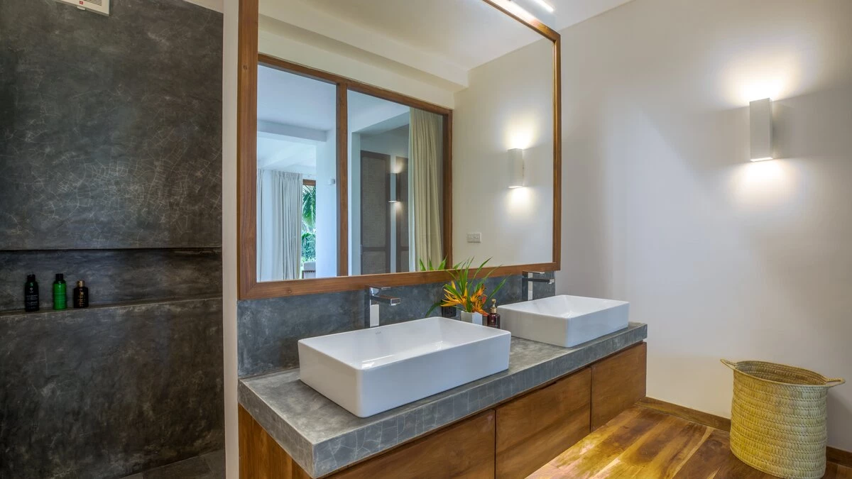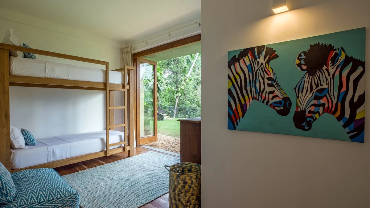Rambutan was recently renovated with an emphasis on comfort, incorporating new furnishings and small details into every corner of the villa to feel more like a home for its guests. On the ground floor, the open plan living and dining area allow for the space to truly open up, inviting conversations between guests to be had more freely, without architectural restrictions. Also on this level, an air-conditioned library and work space provide quiet spots for guests to relax, and the villa’s kitchen can be found here too. With cook service included in your stay, enjoy fresh tropical fruit from the local area, or indulge in a wide variety of seafood straight from the Indian Ocean. Our highly accomplished in-house chef is available to cook both western and local dishes, as per your wishes. The first floor of the main house is home to a total of four en suite bedrooms, each with air-conditioning and a spacious layout, with two of the four having balcony access, overlooking the swimming pool and a distant tropical canopy. The lower garden level features three more en suite bedrooms, alongside a games room with table tennis.
