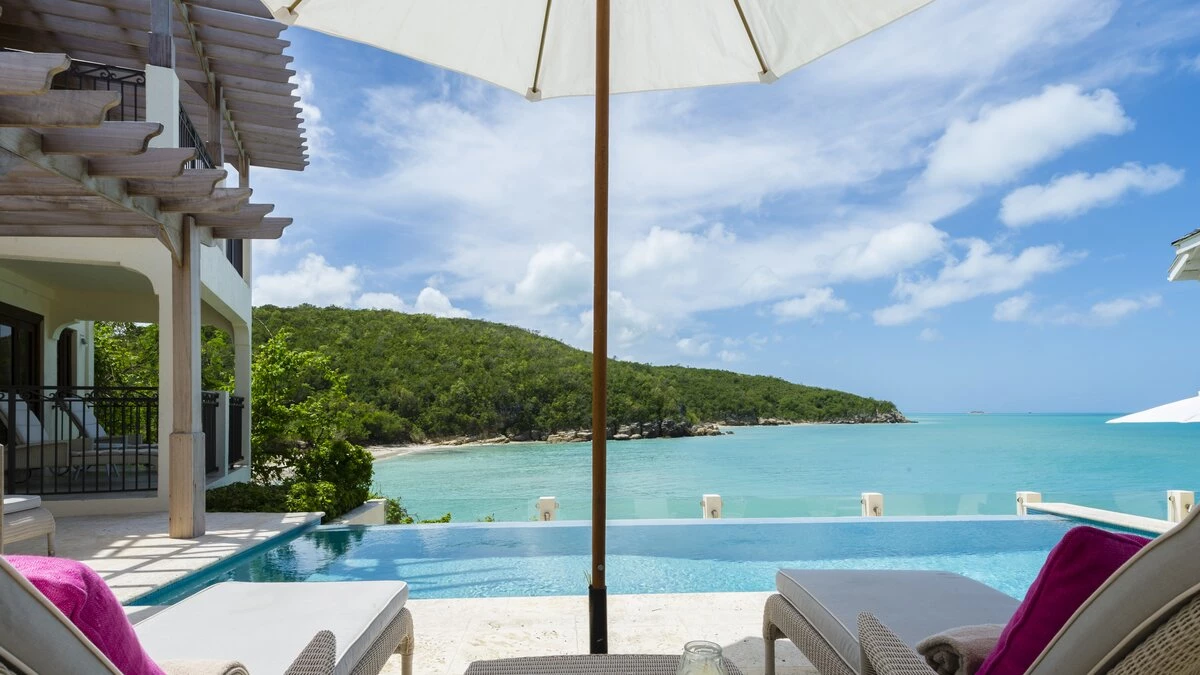 This opulent five bedroom villa that sits right on the tip of Antigua, has panoramic sea views and exquisite design.