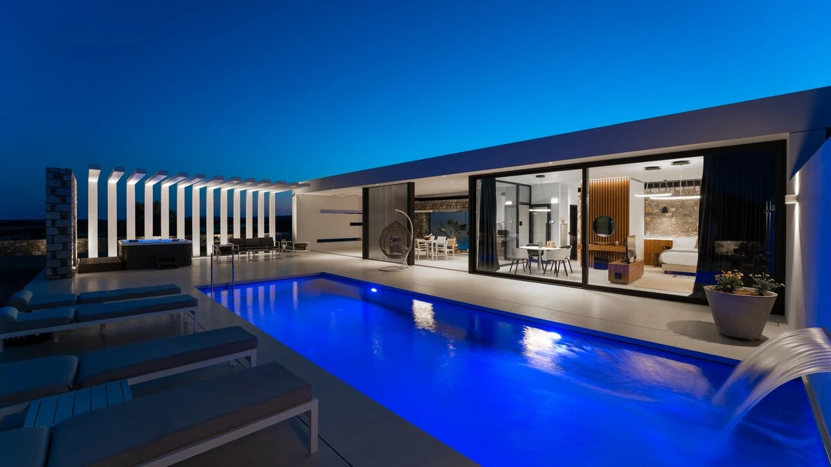 With its own pool, spa and fitness room complementing contemporary comfort, this luxury villa in Cre... -