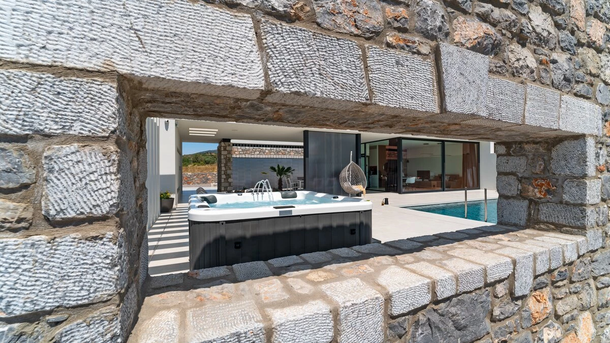 Outside is a refreshing private pool, exterior dining room, lounge area and a private heated Jacuzzi, perfect for a tipple under the stars. The property is just a short drive or walk from beach bars, tavernas and shops.