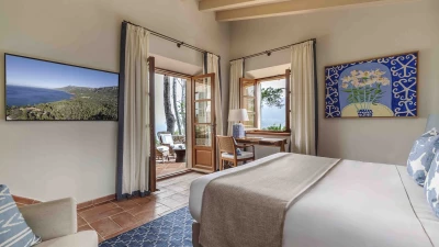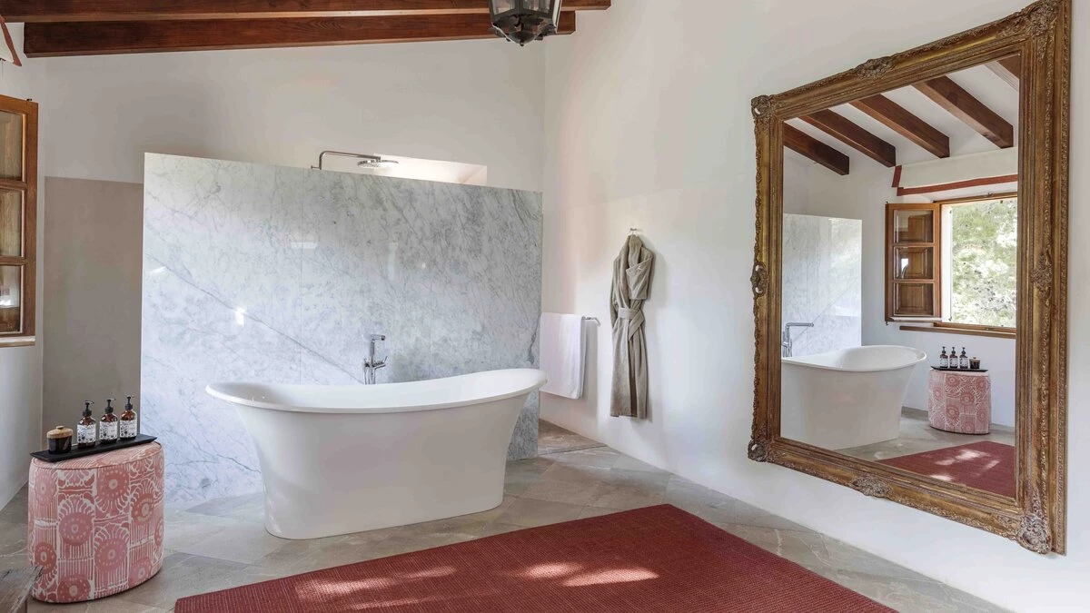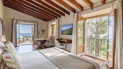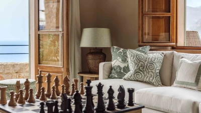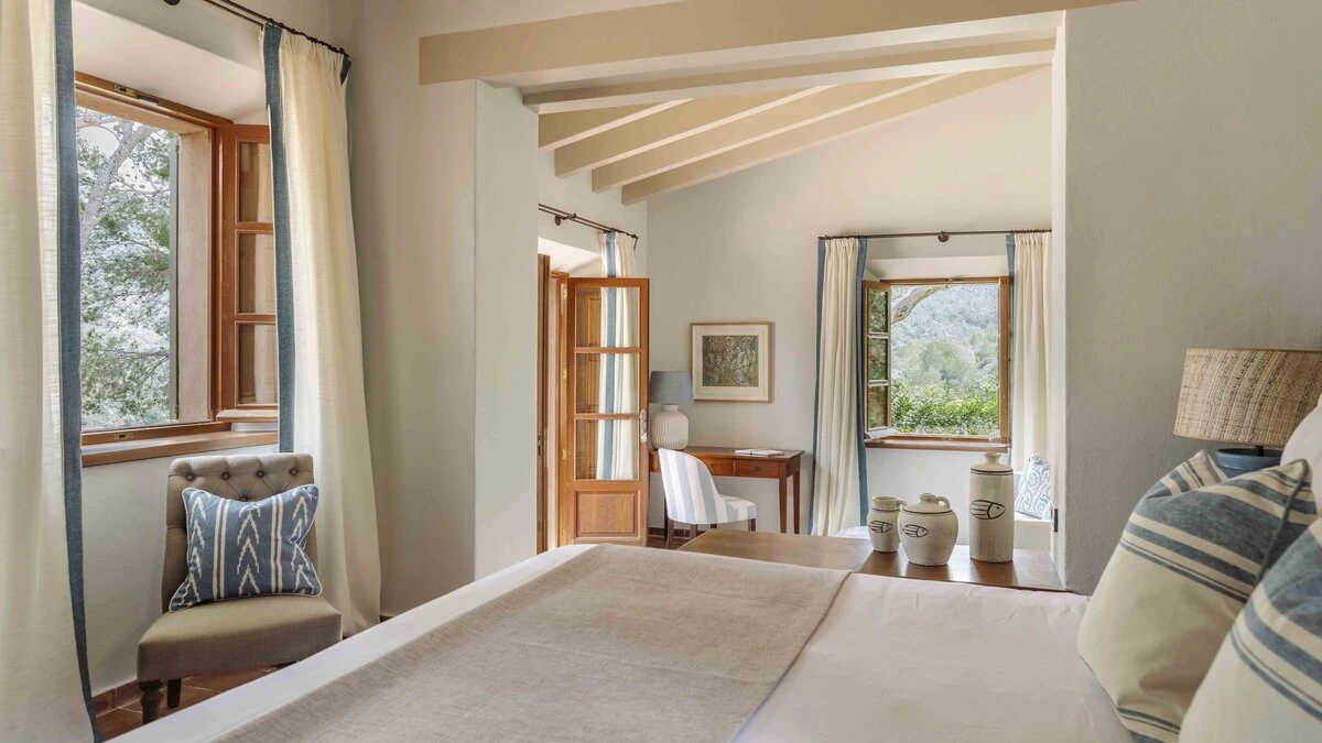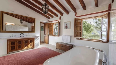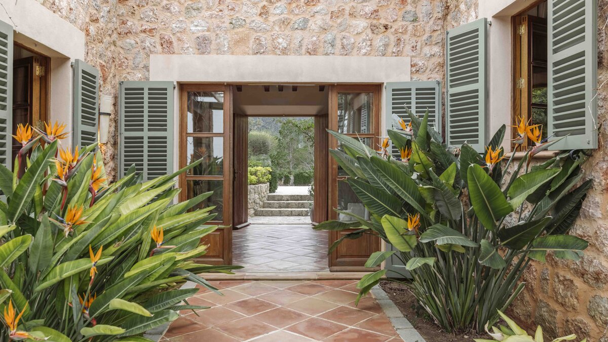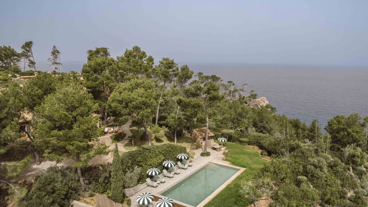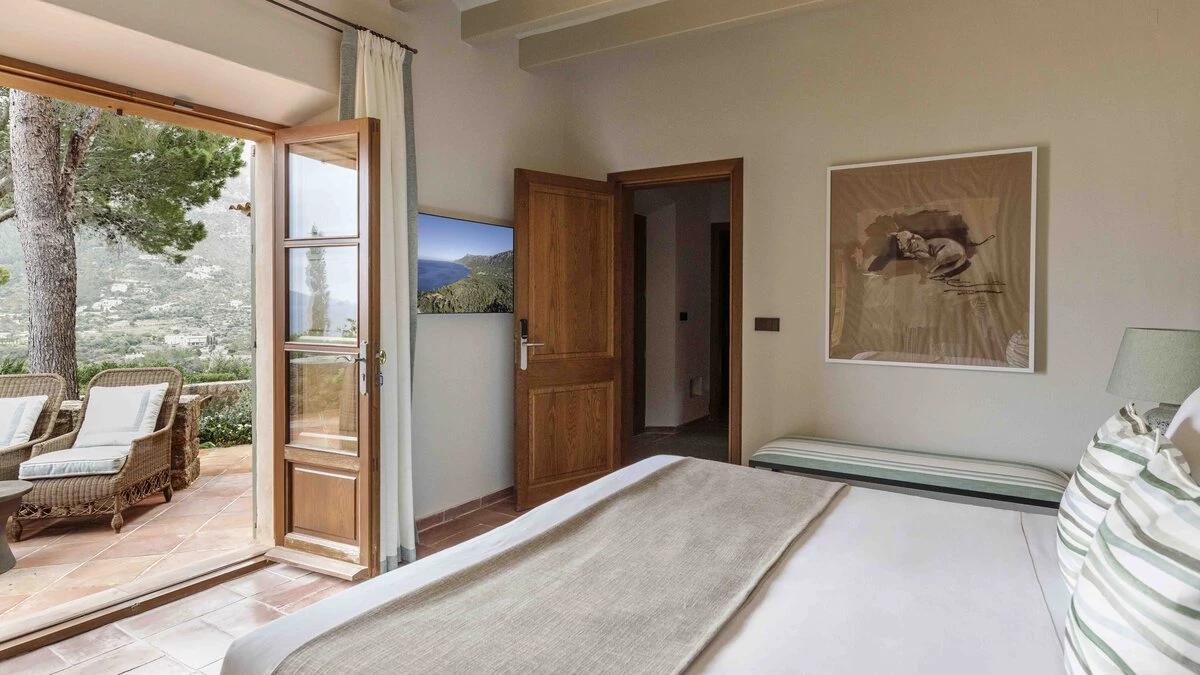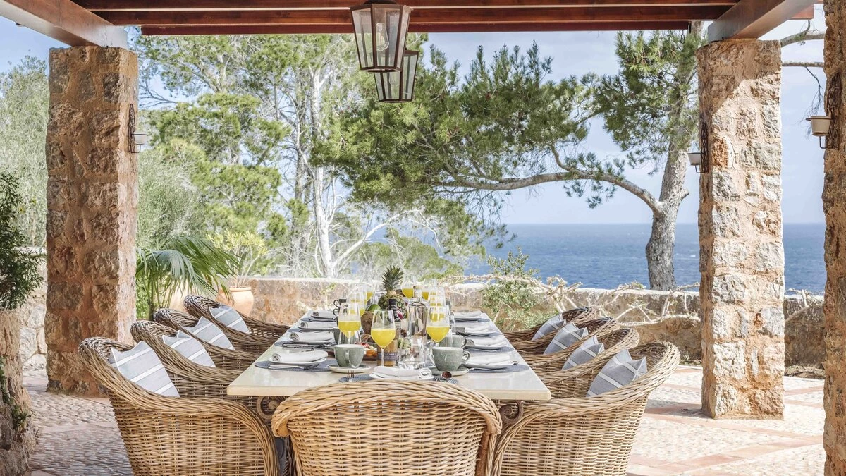 With extensive lawns beneath tall trees, and uninterrupted views to the blue of the bay, Sa Punta is stunning in concept and design. Set on a prestigious estate on Mallorca’s northwest coast, the house is serenely private, though the village of Banyalbufar is a very short drive away, and the picturesque villages of Palma, Deiá and Sóller are all within easy reach. A picturesque pebbly beach is approximately 20 minutes walk from the villa.