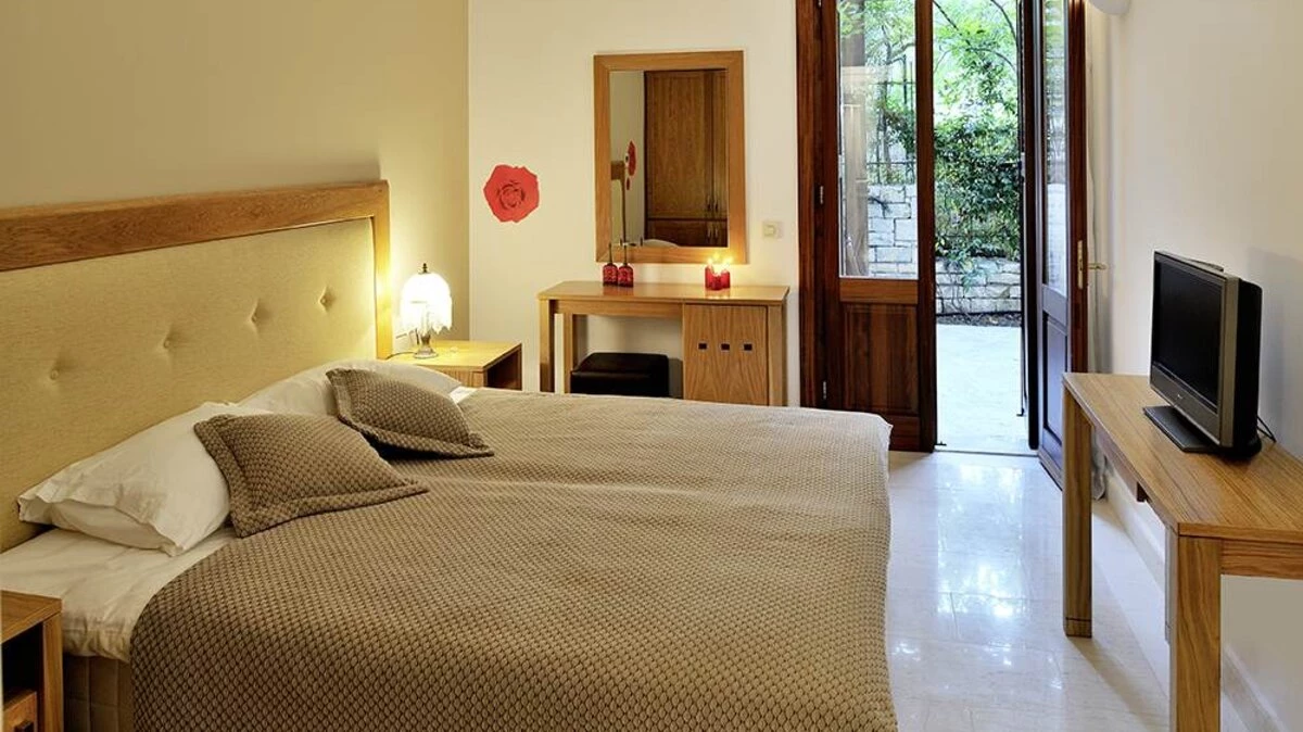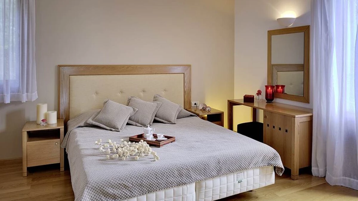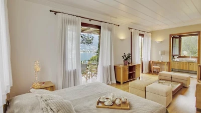 This superbly sited villa in Lefkada sits right at the water’s edge, cushioned in colourful gardens which lead to its own jetty, and cossetting guests with quality, comfort and style. Spacious and sophisticated, this lovely villa in the heart of Lefkada’s glorious Geni Peninsula has a rather grown-up feel. Beautifully renovated to create an oasis of calm, it is furnished in soft neutrals and embellished with oak and Italian marble. The sitting/dining room opens on to a generously sized terrace, looking out over the water and comfortably furnished for coffees or sundowners. Each of the three double bedrooms has doors to a terrace or a Juliet balcony, and can be converted to twin beds if required; and special mention must be made of the vast Master Suite, which runs the full length of the house and opens on to a covered, sea-facing terrace. Lawned and palm-dotted gardens surround the swimming pool and meet the sea, accessing the jetty’s boat mooring. From here it is an easy sail across to Nidri for shopping, and a choice of beaches and good snorkelling sites are within fifteen minutes by boat. There are good tavernas a ten to fifteen minute stroll from Sailor’s Retreat.