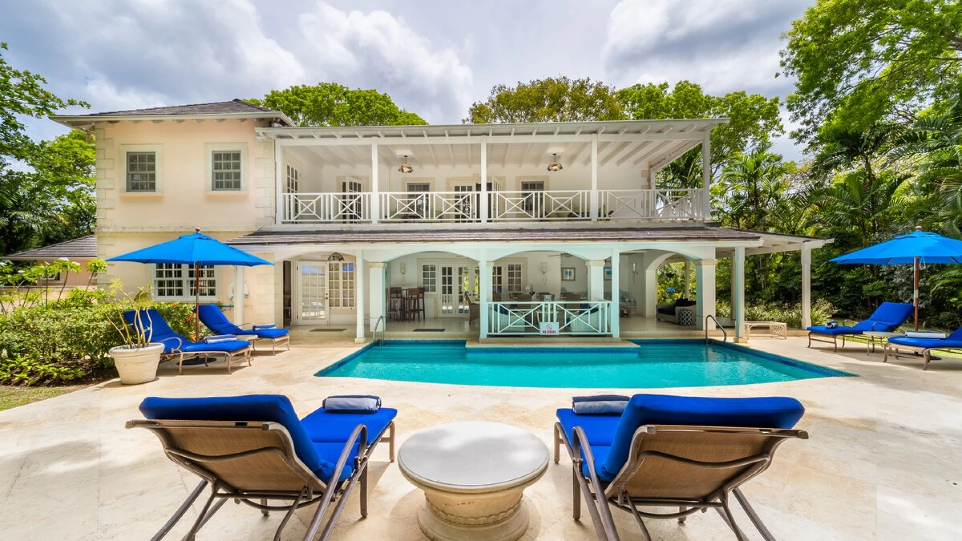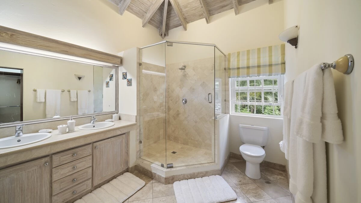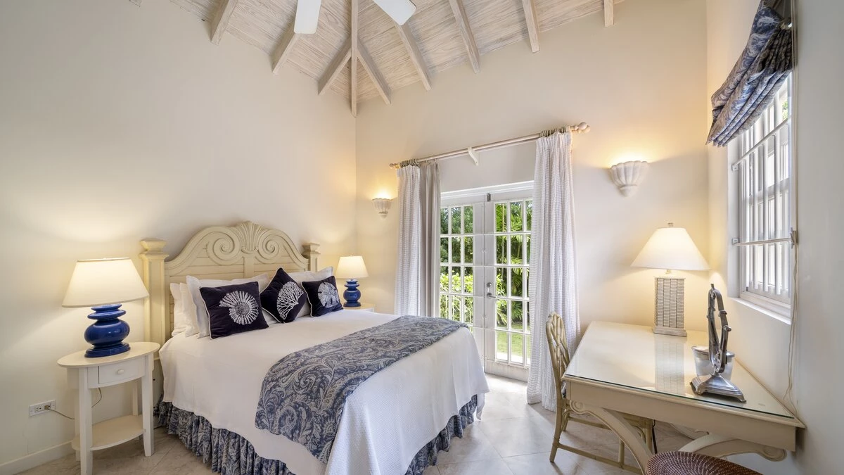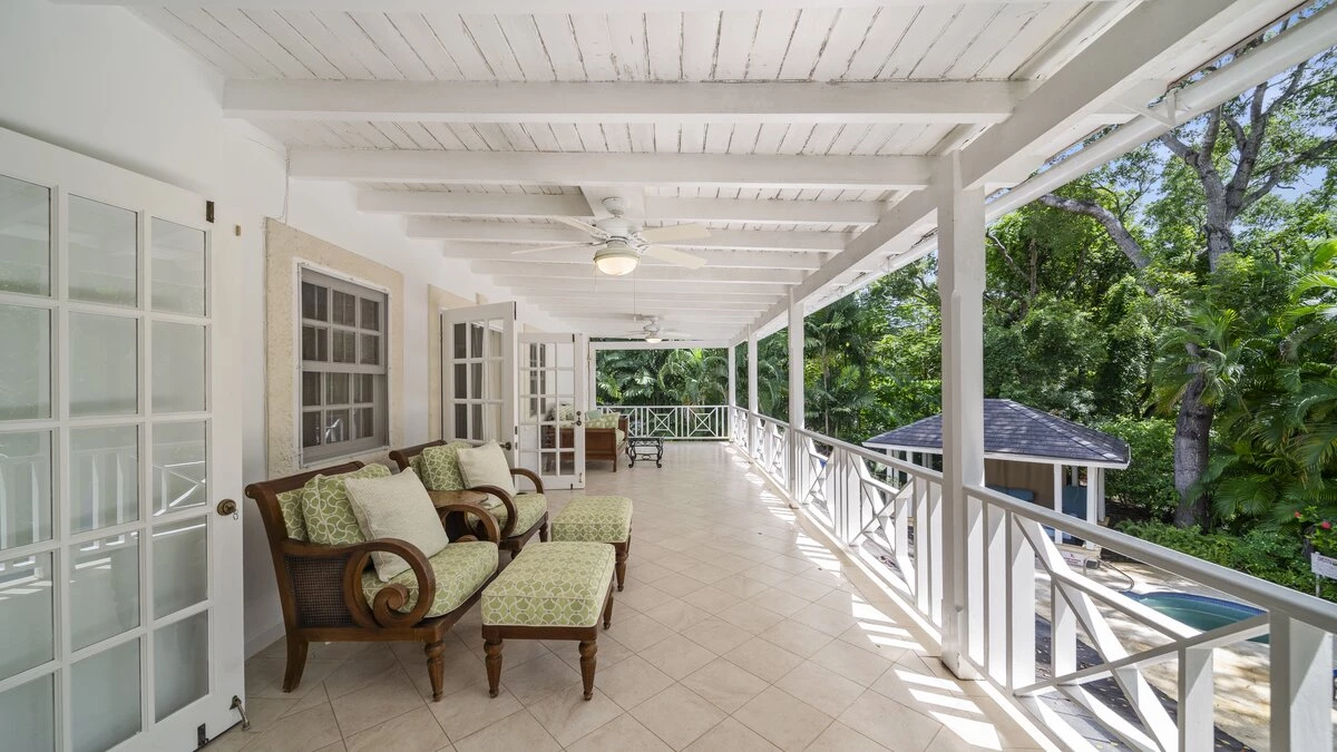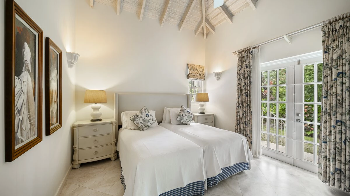 Sandalwood House, perfectly secluded in its extensive gardens, provides an incredibly tranquil holiday experience. Whether you’re tanning on the pool deck, splashing in the pool, soaking in the Jacuzzi, or enjoying a stroll around the golf course accessed from the garden, you’re sure to experience total relaxation. The covered terrace with lounge and dining area, the pool deck with comfortable loungers, and the gazebo all provide ample choices for outdoor living. Sandy Lane beach is only a 10 minute walk away, and here you’ll find a private cabana with sun loungers, a basic kitchen and shower for your exclusive use. There are also shops and restaurants only a five minute drive away. Inside, there is a large kitchen and a comfortable sitting room with French doors opening to the terrace. There is also the first of four beautifully furnished en suite bedrooms and an additional bathroom, which is conveniently positioned to serve as a changing room when using the pool. On the upper level there are three further bedrooms with en suite shower rooms, two doubles and a twin. There is also a charming self-contained cottage with private plunge pool in the grounds, perfect for couples looking for a romantic spot or small families seeking a little privacy. An experienced staff of butler, cook and housekeeper, together with a gardener and night security guard complete the villa experience.