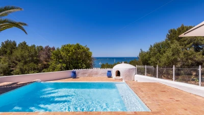 And just below this broad veranda, a brick-paved sun terrace, partly in palm shade, surrounds a cool infinity pool. A sloped, stepped and gated pathway leads from Sandy Bay Cottage to the huge soft sand beach, just 300m below. Shops and restaurants in Ferragudo are a walkable 1.2km away, and tennis, golf and water sports are all within 4km.