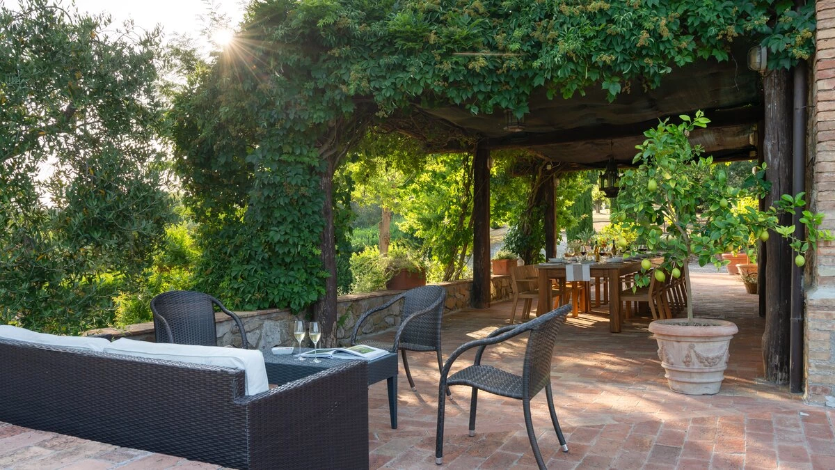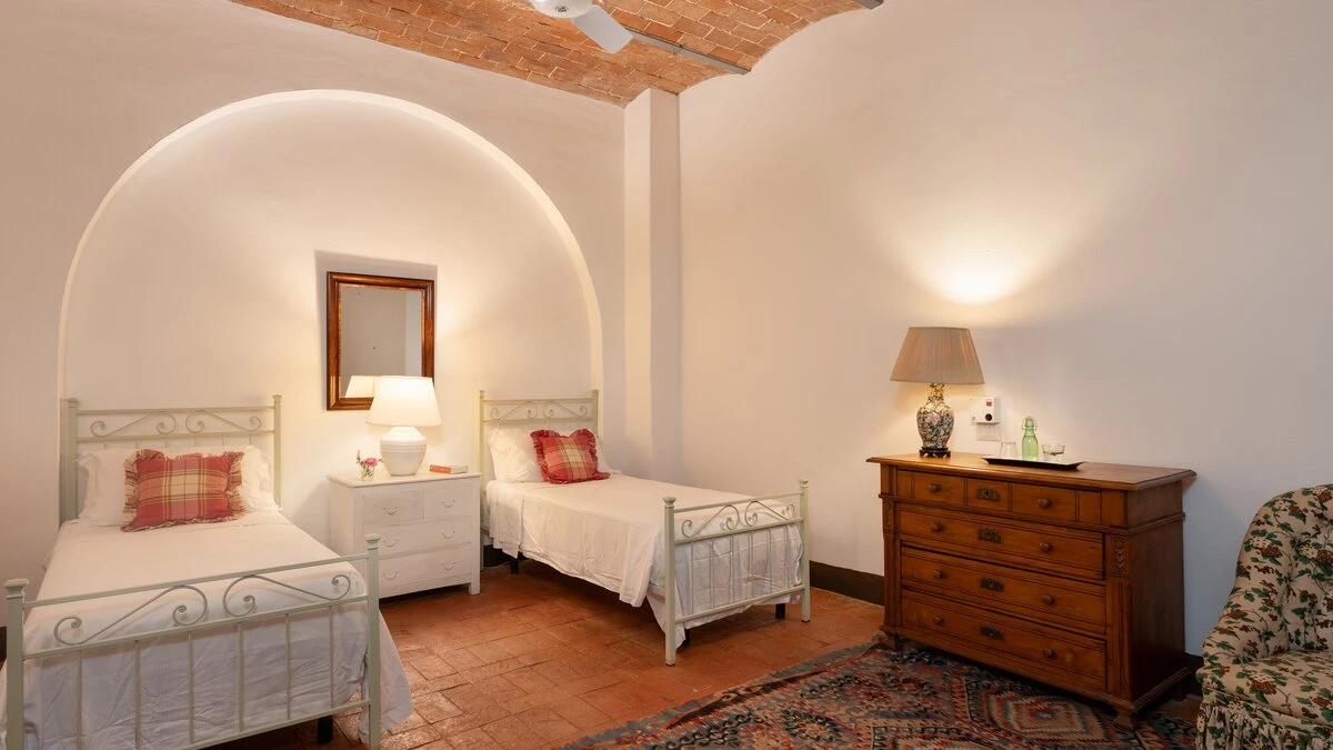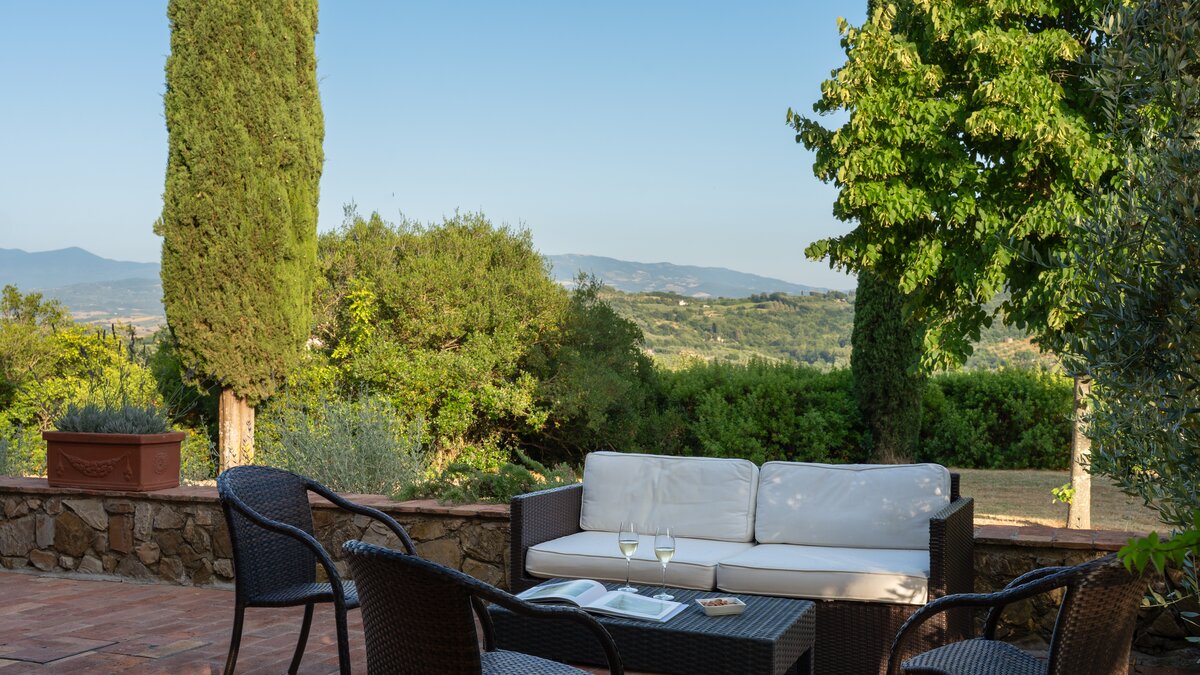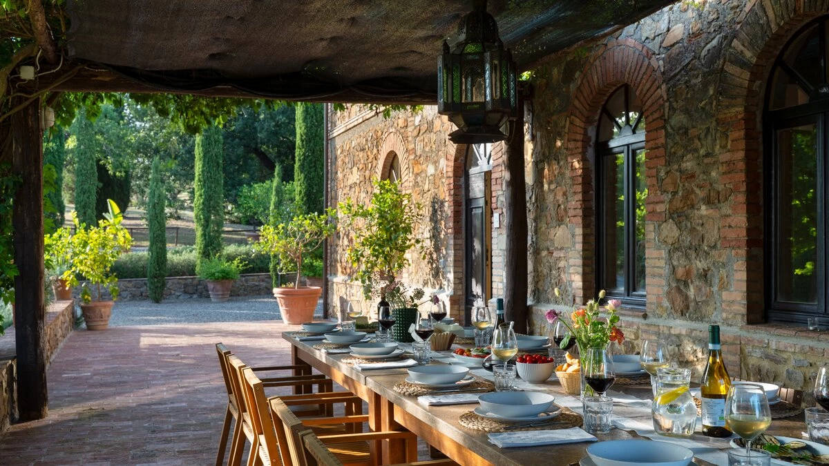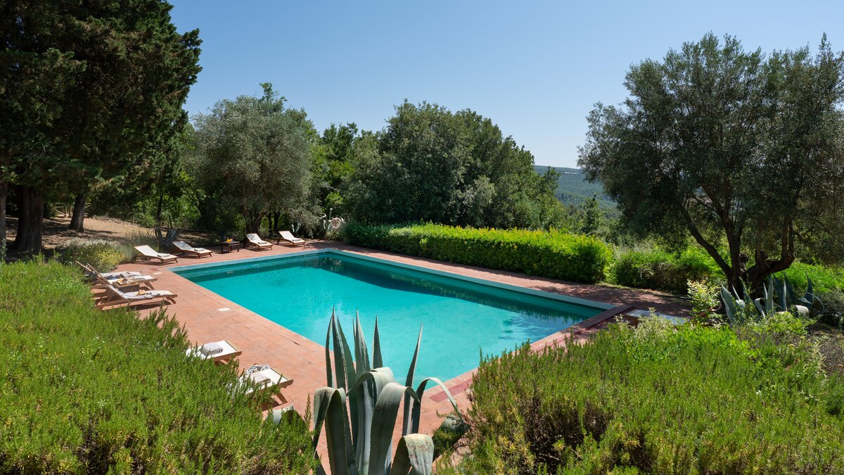 Medieval towns, Maremma Natural Park and the shores of Monte Argentario are all within easy reach of this gorgeous old farmhouse, though its welcoming comfort and wonderful ambience make it tempting to just stay-put. Blissfully peaceful and beautifully restored, it is a relaxing haven of understated elegance, tucked away on a private estate, close to an imposing Castello. With splendid panoramic views, the villa stands in informal gardens, where a generously sized swimming pool is encircled by swathes of lavender and sword-leafed cactus plants. A broad terrace hems the length of the house, with a comfortable corner for sundowners and a chunky rustic table for leisurely lunches under pergola shade. Brimming with character, the villa’s interiors include big arches and brick vaulted ceilings; a large living room, flooded with light from four French windows; a well-equipped country kitchen with dining table; and six very spacious bedrooms, simply styled with fresh-toned fabrics, and rugs on cool tiled floors. The staff at Sant'Antonio are on hand to help make your stay as enjoyable and memorable as possible and offer a very flexible cook service (further details on request). The enchanting Sant’ Antonio is 3km from restaurants in Paganico, 25km from Grosseto, and 45km from Siena.