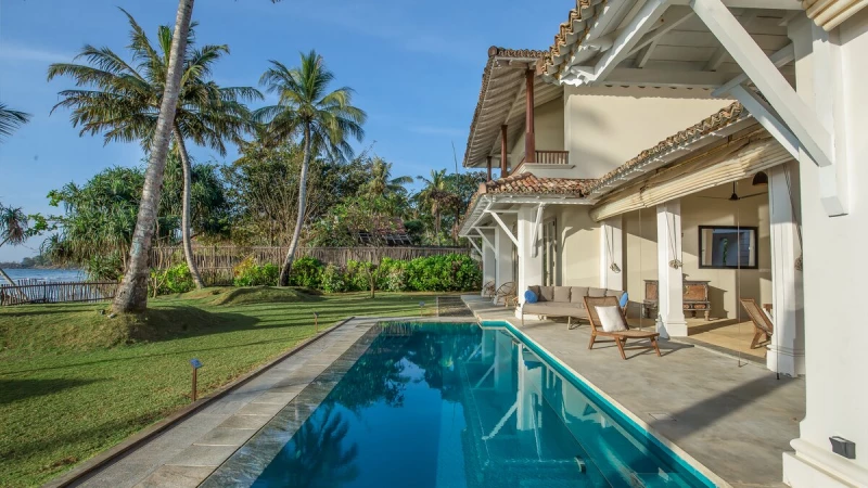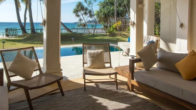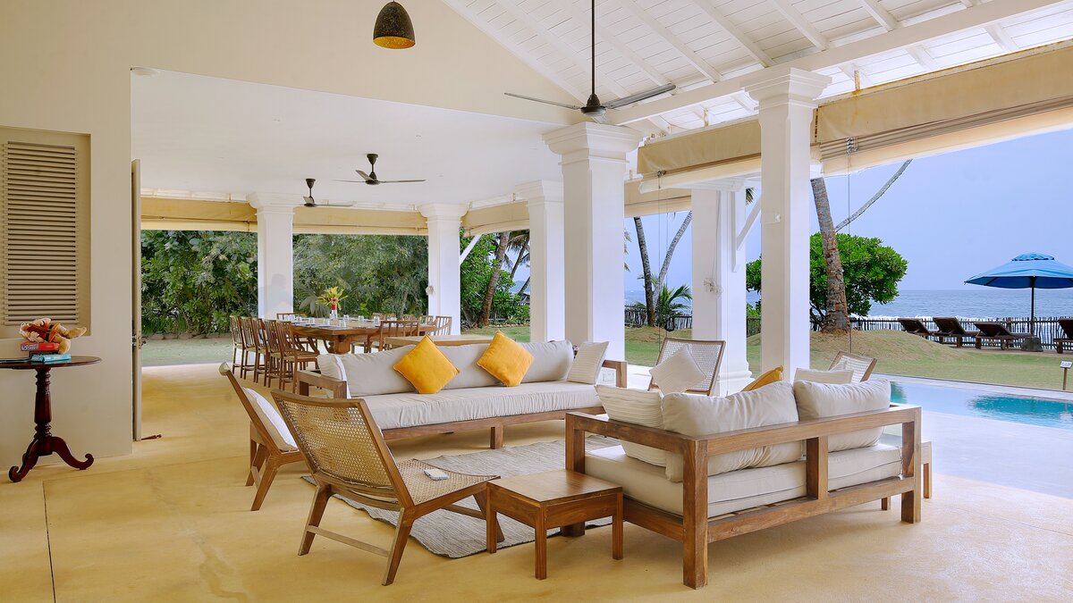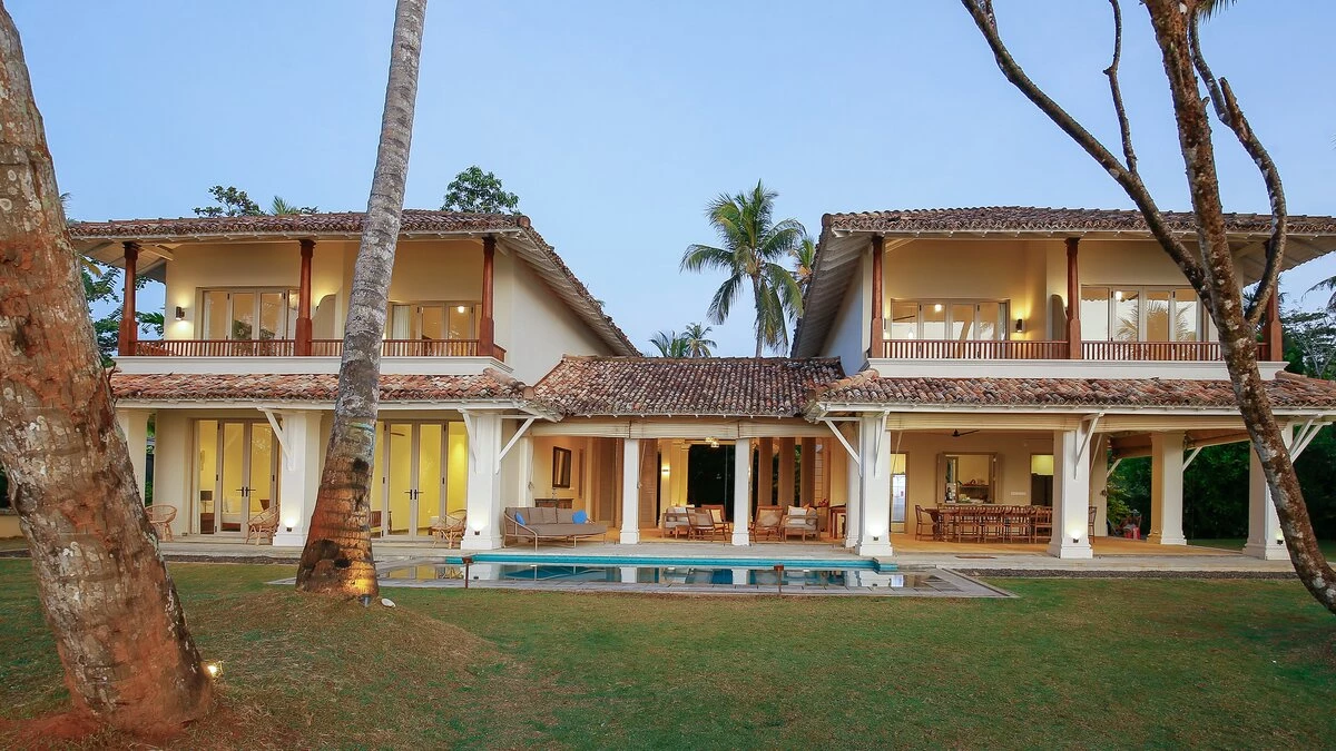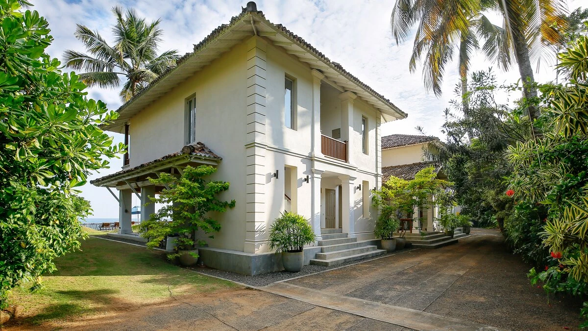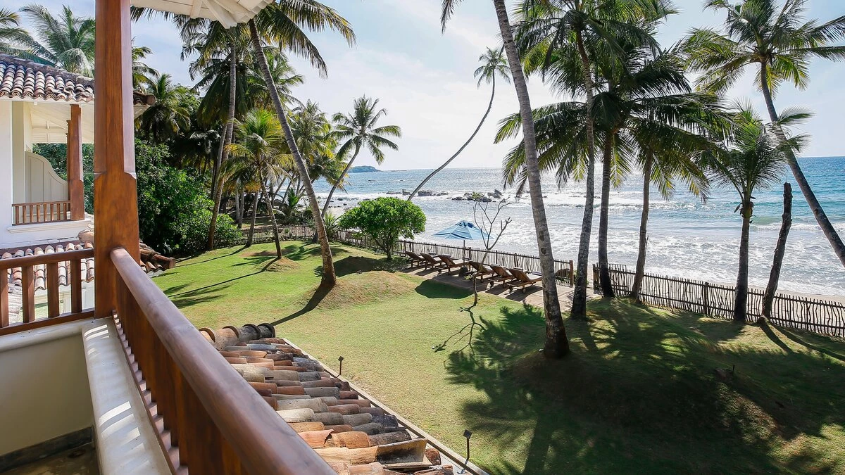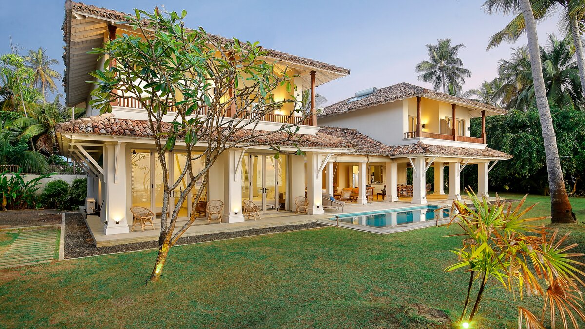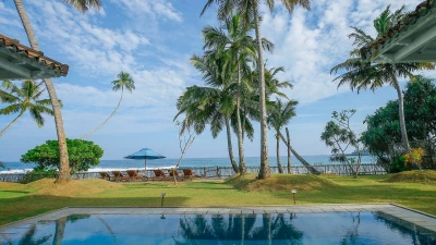 Sapphire is a six bedroom beachfront villa tucked into a quiet, palm‑lined bay on Sri Lanka’s south coast. The garden runs straight down to the sand and the sea is always in view.