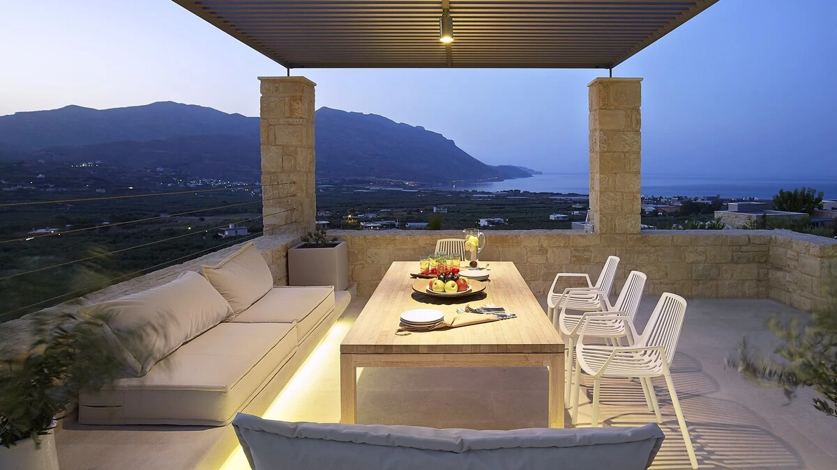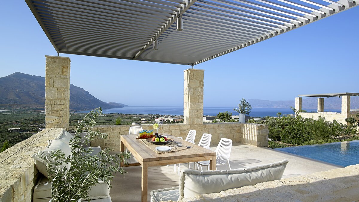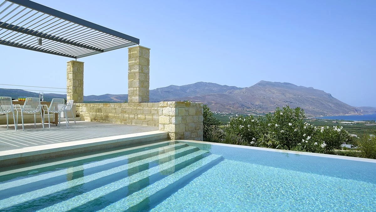 With uninterrupted views across Kissamos Bay, Sea Breeze Villa is a serene coastal retreat that blends contemporary elegance with spectacular natural surroundings. Thoughtfully designed across multiple levels, this stylish three-bedroom villa is perfect for couples, friends or families seeking a peaceful escape on Crete’s unspoilt west coast.