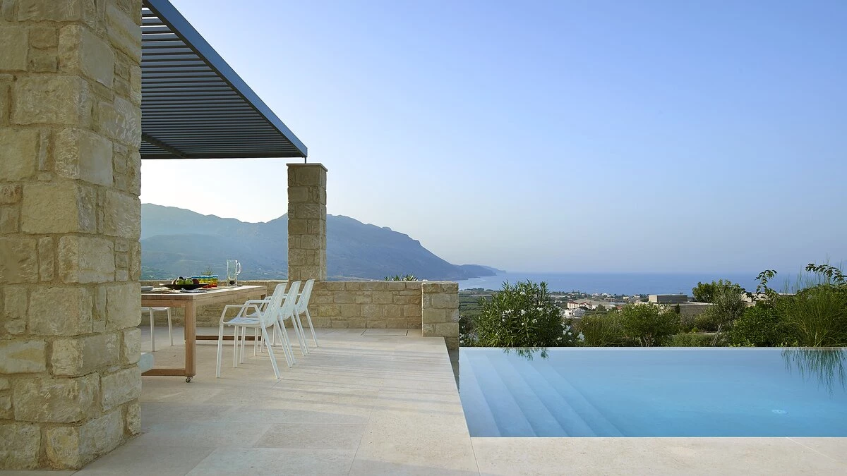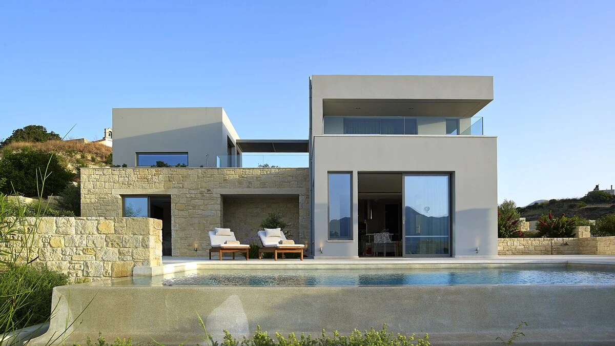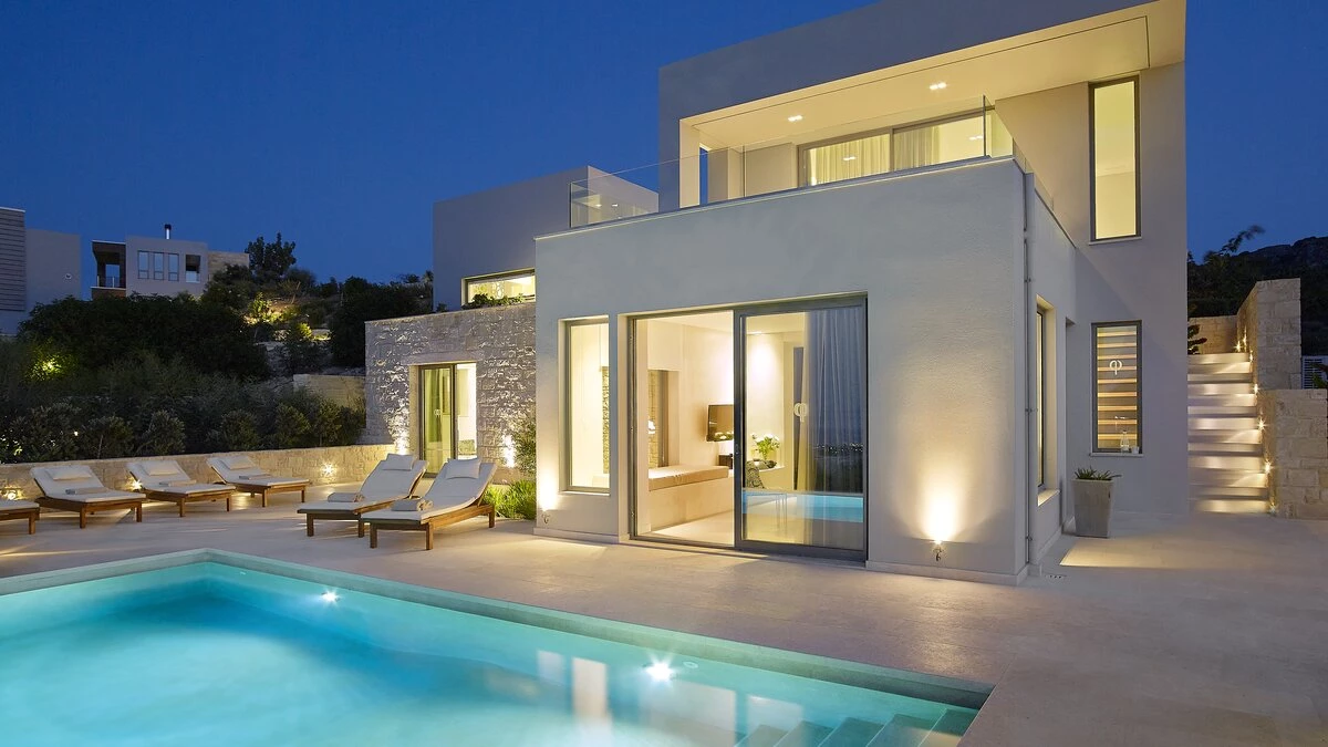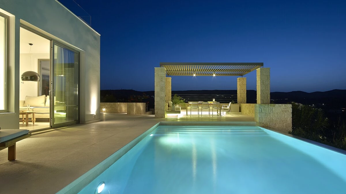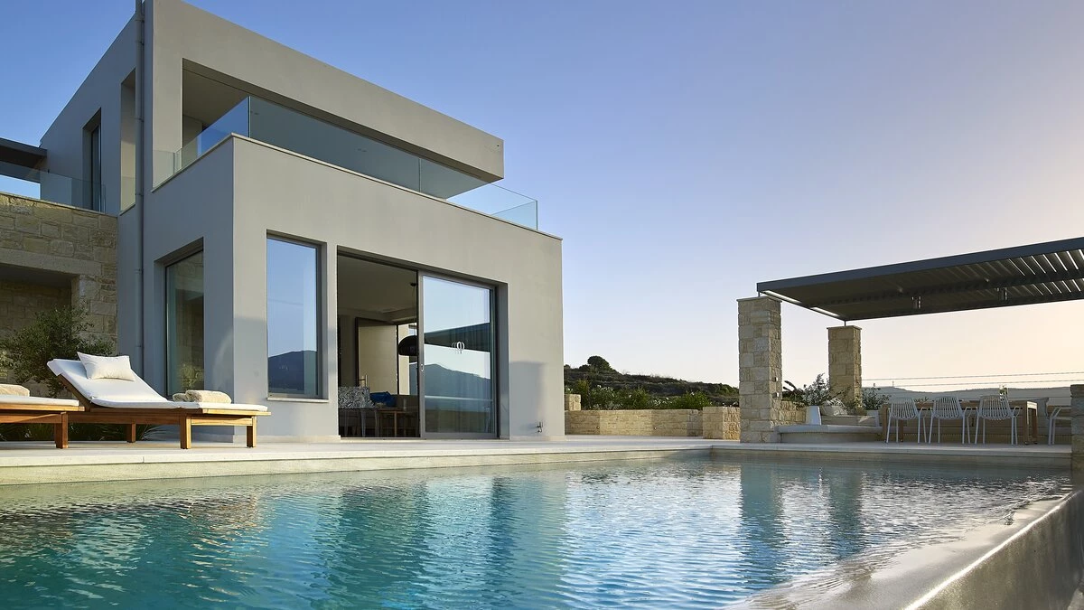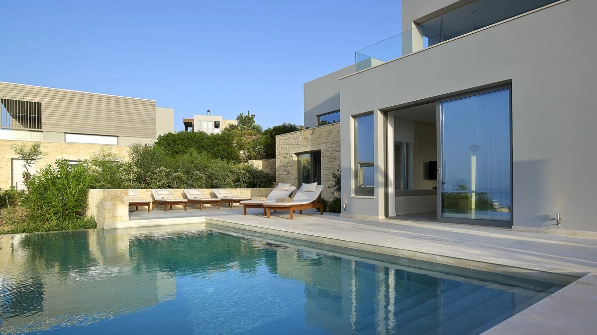 With its own pool, spa and fitness room complementing contemporary comfort, this luxury villa in Cre... -