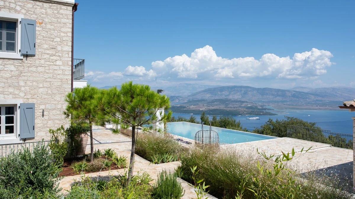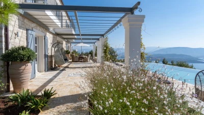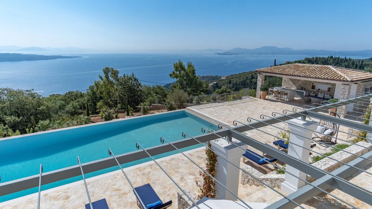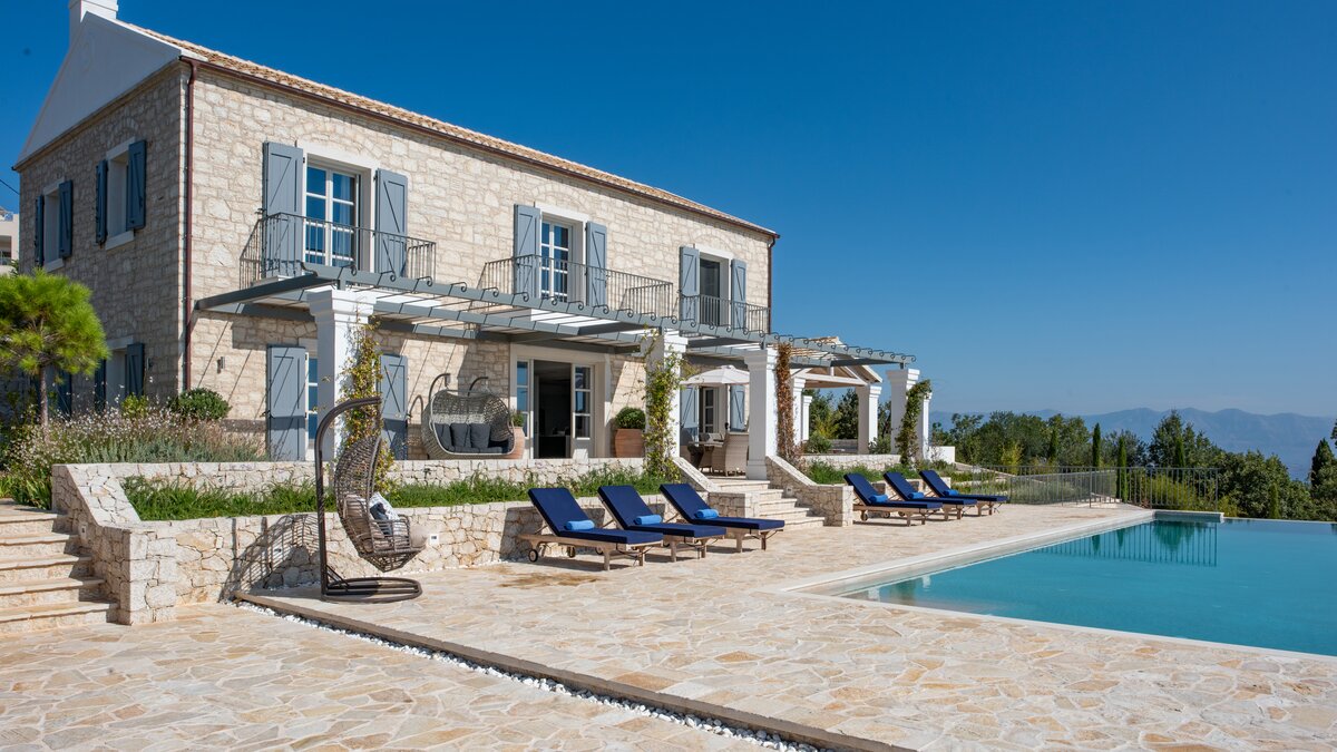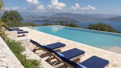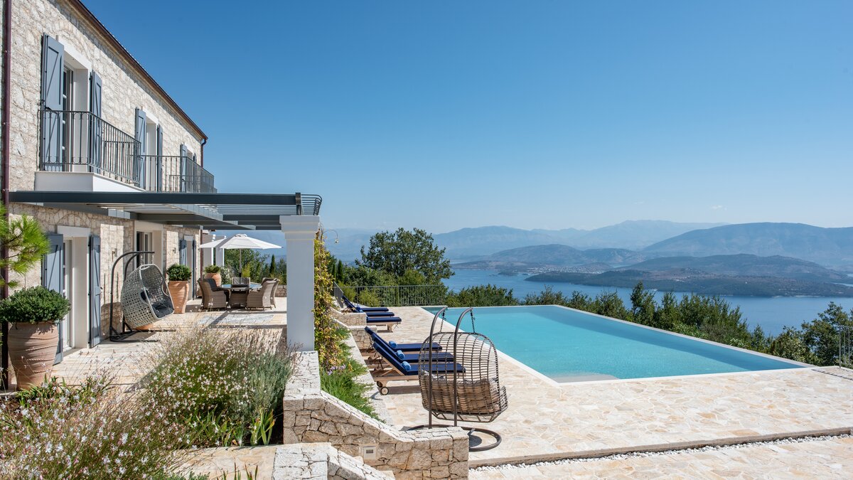 Seraphina is an immaculate modern villa located in Corfu, perfectly positioned with extraordinary views of the sea. This villa is part of CV Villas’ ABOVE collection and includes concierge service plus cook service for breakfast and one other meal in July and August. Seraphina has been newly refurbished in a modern and stylish design, with plenty of space for families and large groups. The ground floor features a bright and airy open-plan kitchen and living area which opens out onto an al fresco dining terrace. Head to the lower ground floor to discover three spacious and modern double bedrooms, each with a lovely en suite. This floor also includes a wine cellar. Up on the first floor are three more en suite double bedrooms, each opening to a balcony. The master suite even boasts a luxurious plunge pool on its private balcony. Outside, guests will enjoy a private pool, lounge area and shaded al fresco dining and bar area. There is also a unique yoga terrace.