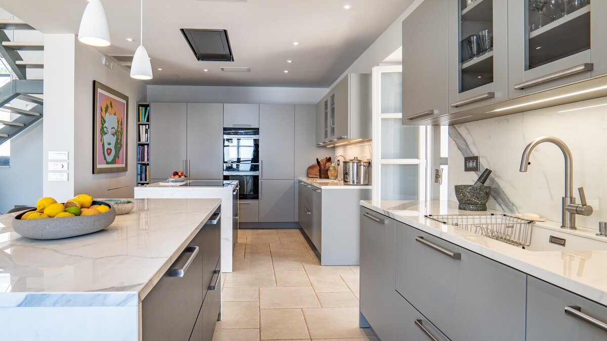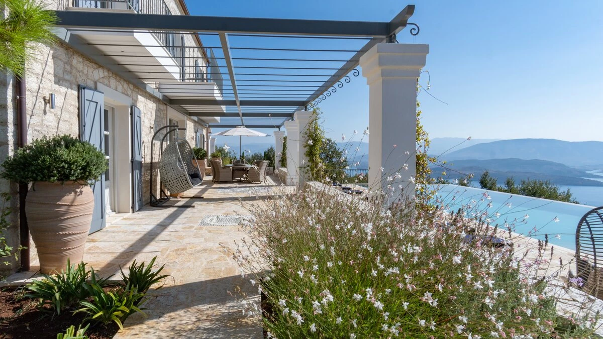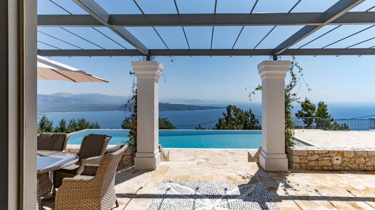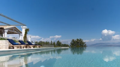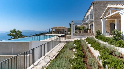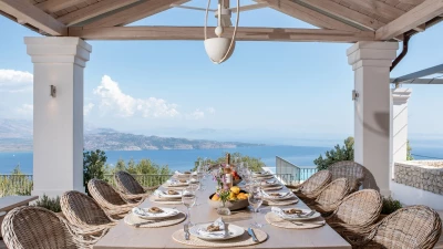 Seraphina is an immaculate modern villa located in Corfu, perfectly positioned with extraordinary views of the sea. This villa is part of CV Villas’ ABOVE collection and includes concierge service plus cook service for breakfast and one other meal in July and August. Seraphina has been newly refurbished in a modern and stylish design, with plenty of space for families and large groups. The ground floor features a bright and airy open-plan kitchen and living area which opens out onto an al fresco dining terrace. Head to the lower ground floor to discover three spacious and modern double bedrooms, each with a lovely en suite. This floor also includes a wine cellar. Up on the first floor are three more en suite double bedrooms, each opening to a balcony. The master suite even boasts a luxurious plunge pool on its private balcony. Outside, guests will enjoy a private pool, lounge area and shaded al fresco dining and bar area. There is also a unique yoga terrace.