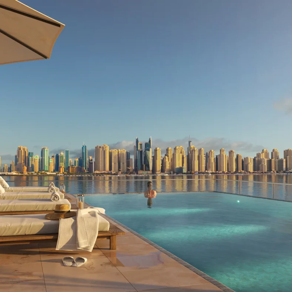 With uninterrupted views across the Arabian Gulf and Dubai Marina skyline, this is a place where urban sophistication meets laid-back coastal living.