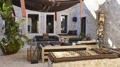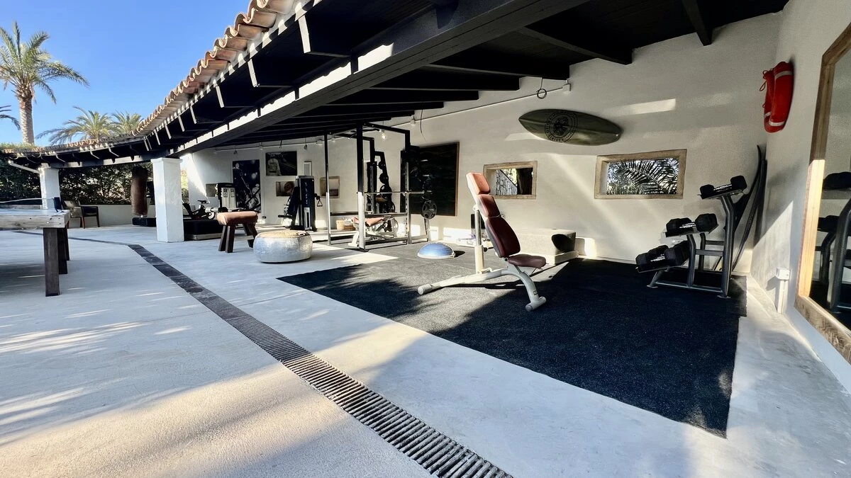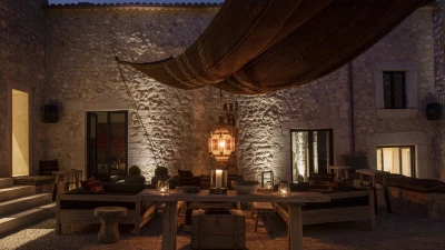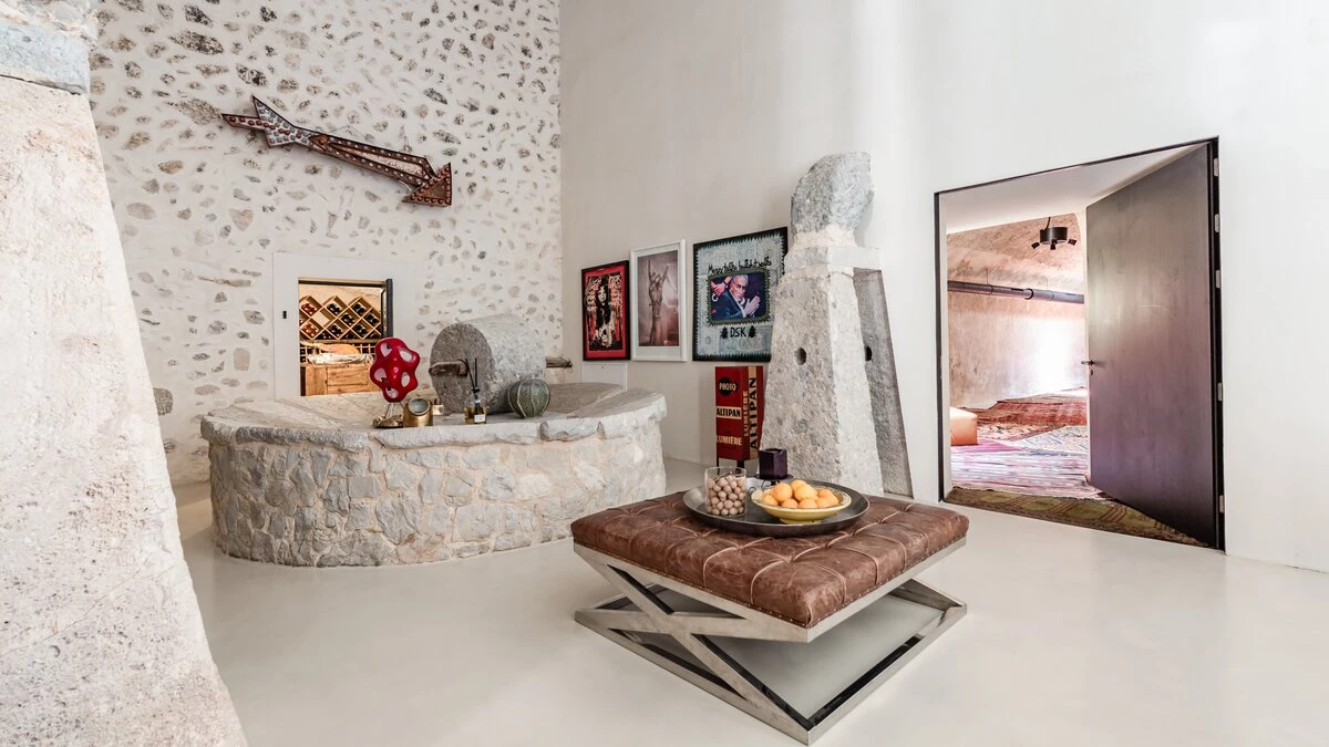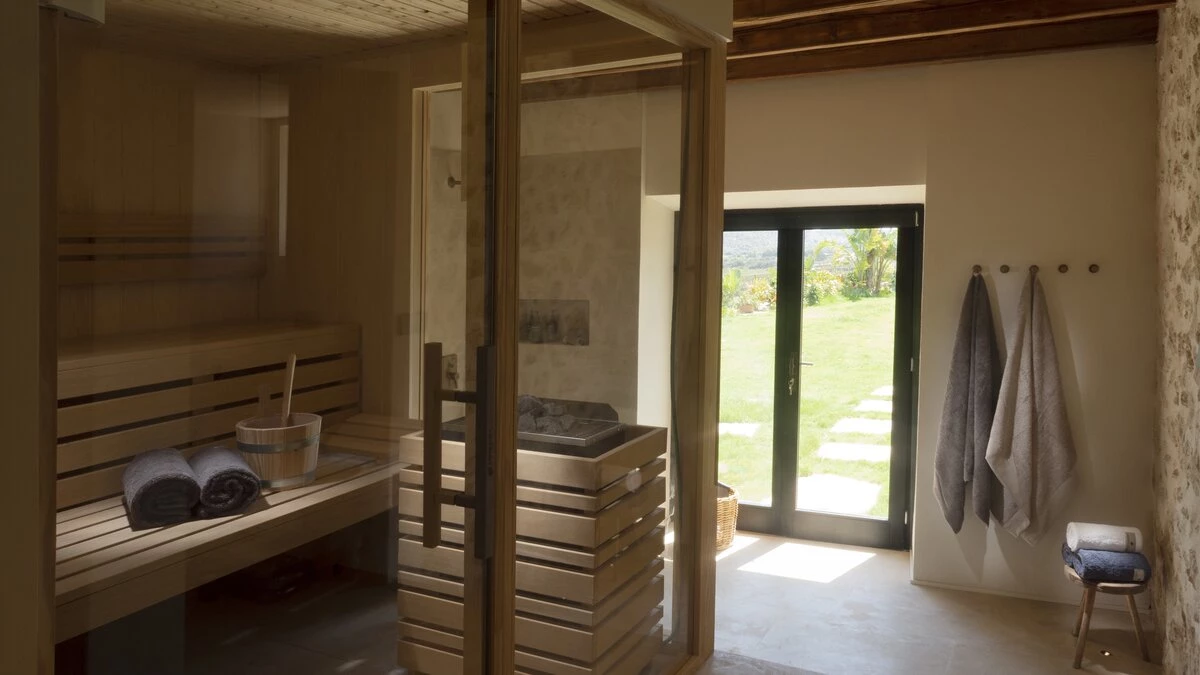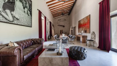 Inside the villa, guests are greeted by interiors featuring details influenced by the owner's travels across Spain, Northern Africa, and West America. Each bedroom is adorned with the finest Egyptian cotton linens, whilst state-of-the-art amenities such as air conditioning, underfloor heating, and a cutting-edge sound system ensure ultimate comfort. The ground floor is designed with a variety of inviting spaces, including dining rooms, comfortable living areas, and an office. For entertainment and relaxation, guests can unwind in the on-site spa and sauna, enjoy treatments in the dedicated treatment rooms, or watch films in the private cinema. Fitness enthusiasts will appreciate the fully-equipped gym and serene yoga and meditation spaces, whilst wine lovers can explore the villa’s well-stocked wine cellar, perfect for sampling local vintage wines from the Alaró region.
