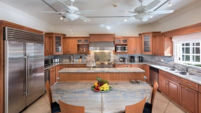 Each of the five double bedrooms is incredibly spacious, three of which are on the first floor with high ceilings and private balconies, while the fourth is on ground floor and fifth is located on the lower ground floor. Four bedrooms have an en suite bathroom. Mullins beach is just a short walk away, and nearby restaurants and shops are km away in Speightstown.