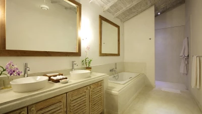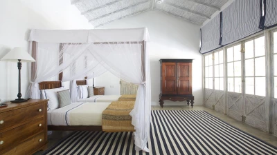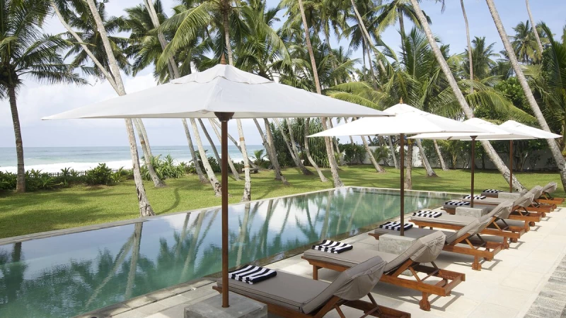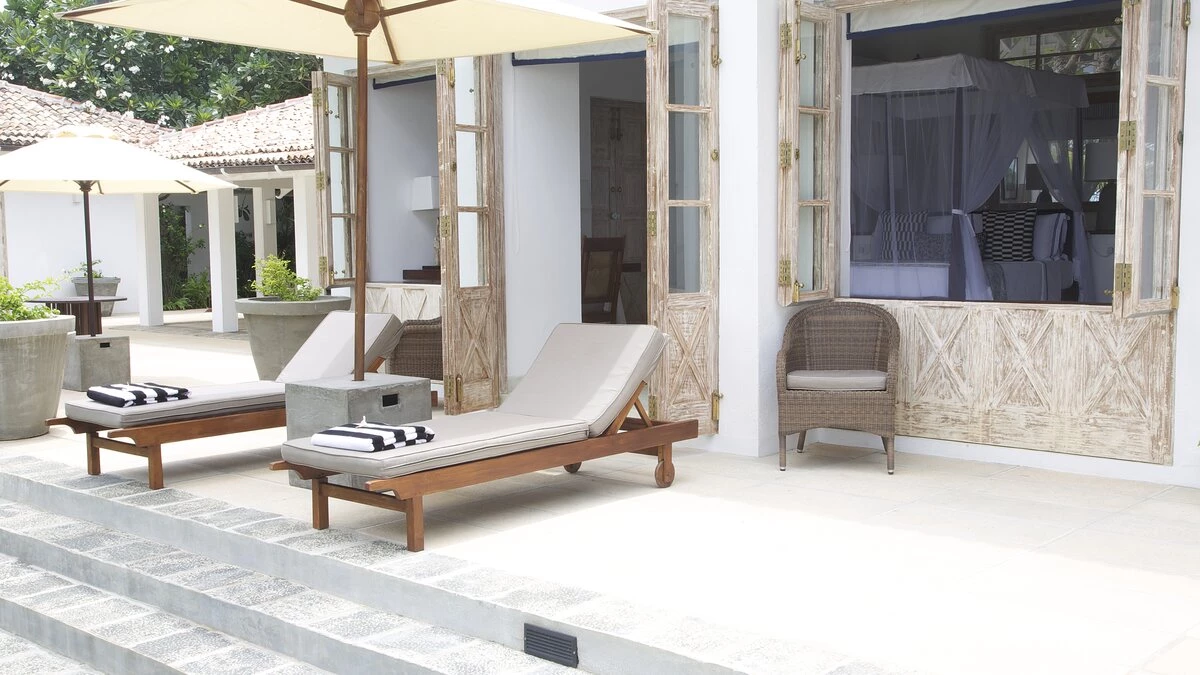 Immaculately designed inside and out, Surya is a beautiful beachfront haven for seekers of rest and relaxation. The location is matchless; at the end of the garden is a gate opening onto a beautiful golden stretch of sand, while the superb shopping and restaurants in Galle is just 14km away. A large, comfortably furnished sitting room opens onto the spacious pool terrace, where a beautiful pool is framed by luxurious wooden loungers and parasols looking across the garden to the sea. The al fresco dining space, framed by vivid pink bougainvillea, is ideally shaded yet open to the warm sea breeze. For rainy days, there is a large air-conditioned games room where guests can relax and watch a film, read a book or play board games. All four bedrooms are separately accessed, which is great for groups of friends travelling together as everyone will have a stunning bedroom and plenty of privacy; plus all the bedrooms have impressive views of the Indian Ocean. The three front rooms have private terraces and access to the lawn and the fourth is at an upper level. The icing on the cake at Surya is the excellent service. A superb team of staff include a manager, housekeeper and a chef, so that guests can completely relax and enjoy being looked after.