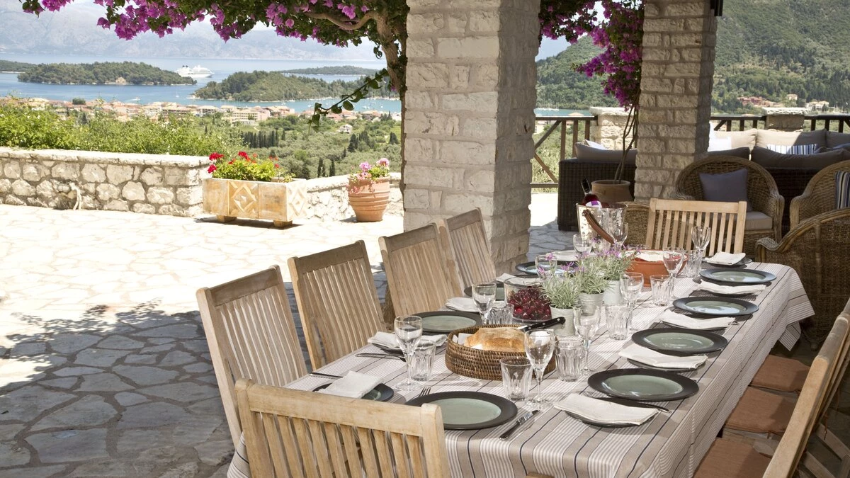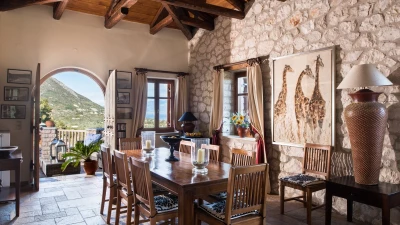 Quality, comfort and character combine to create this very special villa. Its infinity pool looking east over the sea to Skorpios, Meganissi and the mainland, To Petrino is a delightful family villa with generously sized rooms and terraces, thoughtfully furnished with luxurious touches, to make the most of indoor and outdoor living. Whitewashed walls and mellow beams in the open-plan living /sitting room are matched outside with wooden canopies and window shutters, and while cushions add colour to the interiors, bright cascades of bougainvillea frame the al fresco dining area.