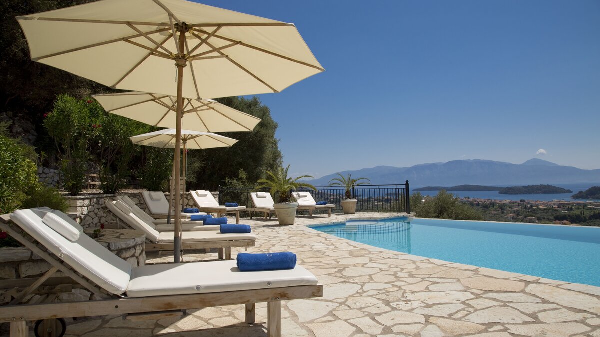 Sumptuous sunrise views over the sea will start the day in style at this lovely villa in the heart of Lefkada, great for families with a gated, heatable pool and perfectly located close to Nidri.