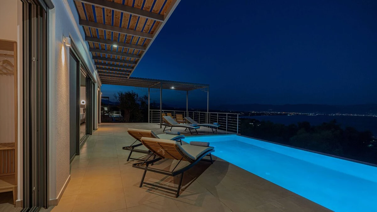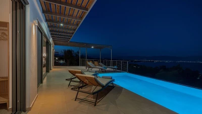 A wonderfully comfortable luxury villa in Lefkada, with magnificent sea views from its secluded seaf... -