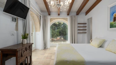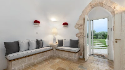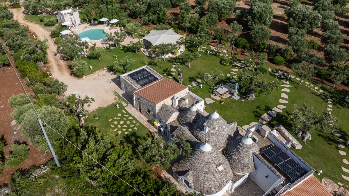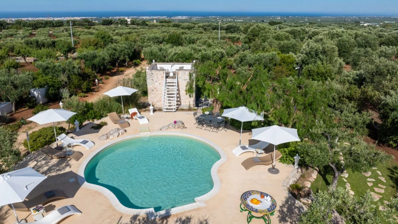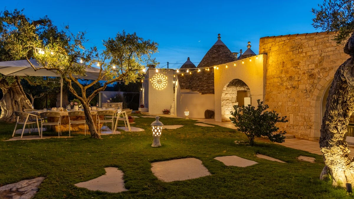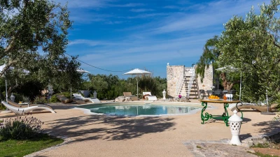 Nestled in the heart of Puglia’s countryside, Trulli Oliveto is a charming blend of traditional architecture and modern comfort. Surrounded by expansive lawns and centuries-old olive trees, this beautifully restored trulli complex offers an authentic yet stylish escape for up to ten guests.