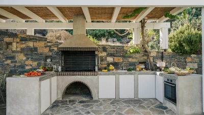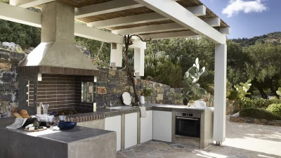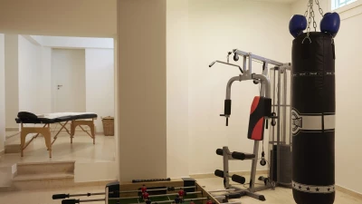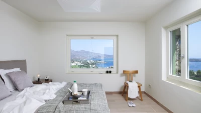 Four more double bedrooms can be found on the lower ground floor, three of which are easily convertible into twin rooms. Each has a shower room en suite. Ideal for a family stay, the lower ground floor is also home to a gym, furnished with exercise equipment and fun activities such as table tennis. This villa also offers fantastic outdoor living spaces. Cook in the charming outdoor kitchen and dine al fresco under the shaded terrace overlooking dazzling sea views, before heading for a dip in the infinity pool. Amenities can be found in Elounda, just 3km away, or Plakka, 5km away. Must-see local spots include Spinalonga, rich in historical ruins, and the sandy beaches of the Island of Chryssi. Heraklion Airport is just 60km away.