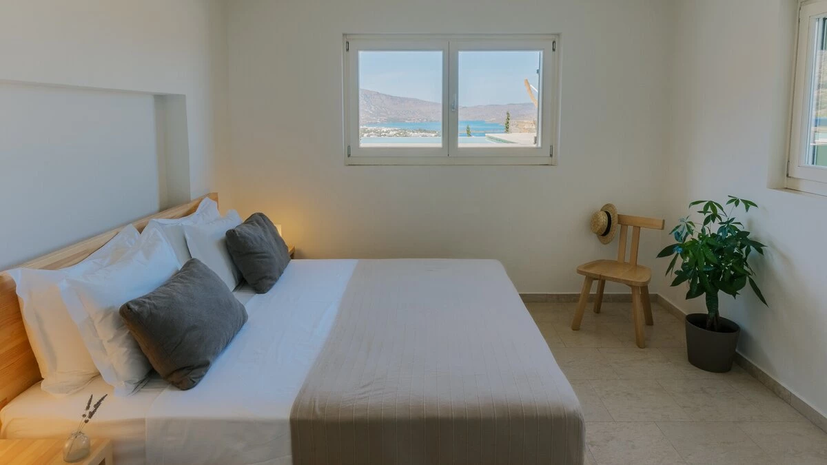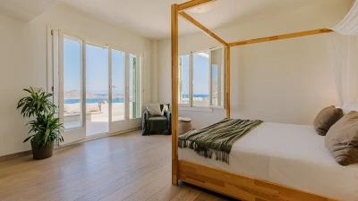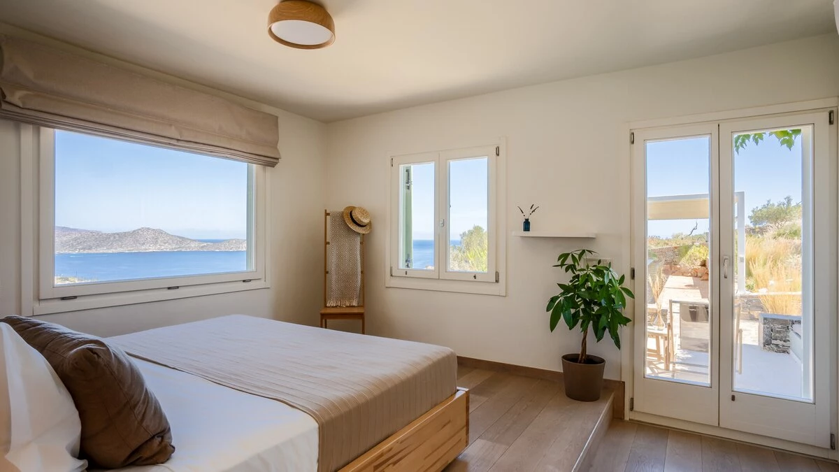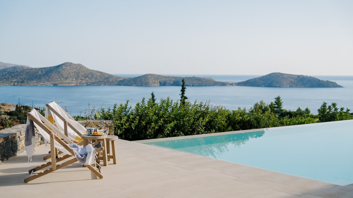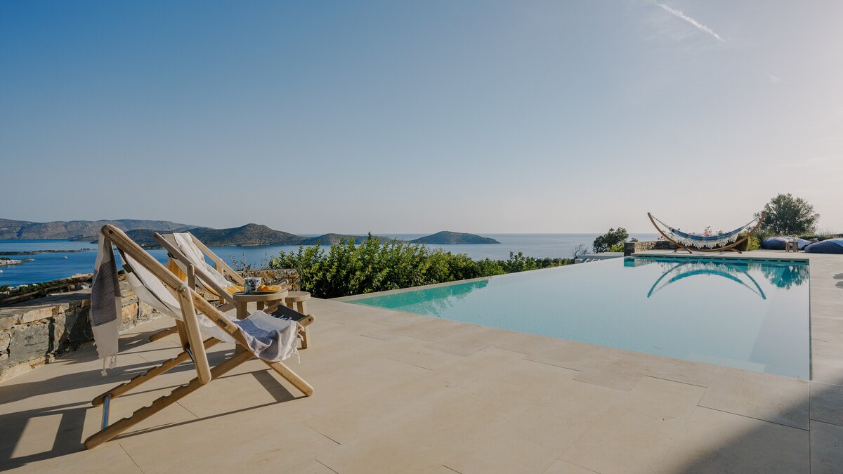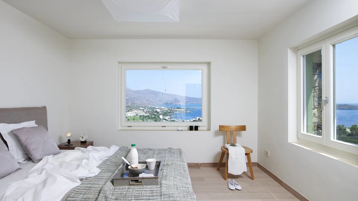 Situated on the outskirts of Elounda, Crete, this elegant property offers a perfect Grecian getaway for all the family. On the ground floor of this modern villa, guests will discover a spacious living/dining area, complete with neutral decor, a fireplace and high ceilings. There is even a study area furnished with a desk. The kitchen is fully equipped, with french doors that open onto a shady lounge terrace with access to the pool area. The ground floor also features two double bedrooms, one of which can be accessed via an external entrance, and features a bathroom en suite and opening to the terrace. Head to the first floor and discover a gorgeous master bedroom furnished with a four poster bed and en suite bathroom complete with a rain shower. The first floor also includes a double bedroom with a bathroom en suite, which can be accessed via an external staircase. This space offers lovely sea views and access to two pretty terraces.