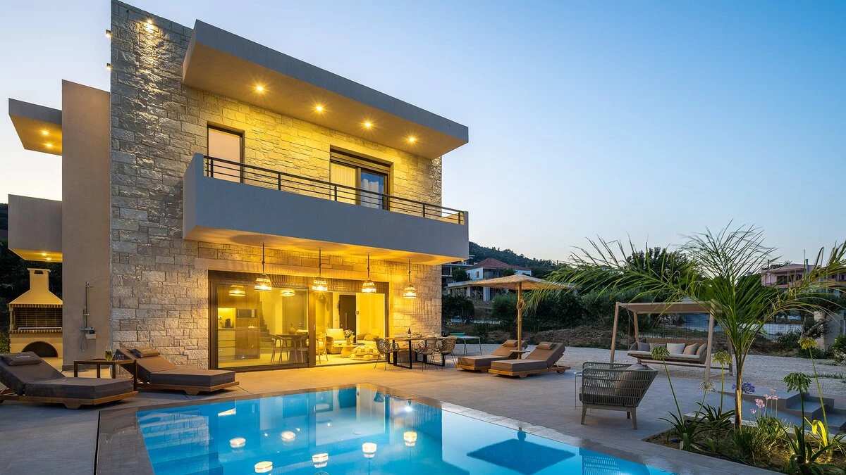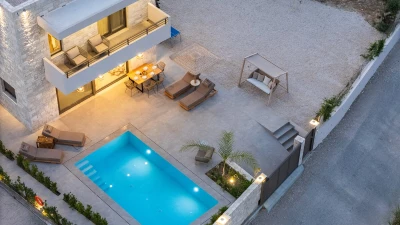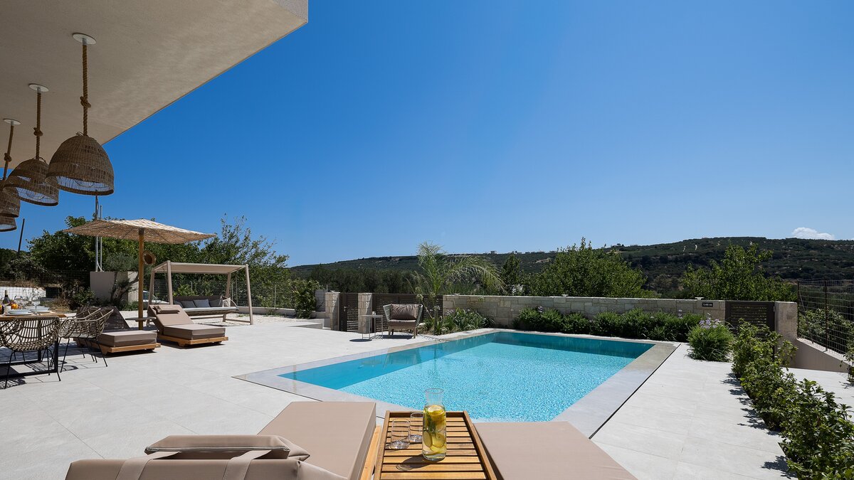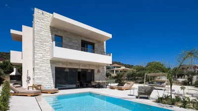 With its own pool, spa and fitness room complementing contemporary comfort, this luxury villa in Cre... -