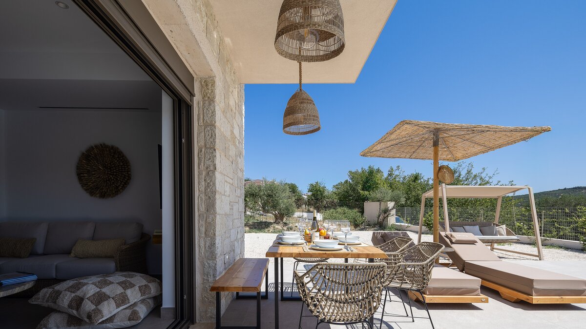 Set in the traditional village of Spilia and surrounded by rolling hills and family‑run orchards, Villa Alia offers an inviting base for a relaxed stay in western Crete. The house combines modern, yet sustainable design, with simple, natural materials, creating a comfortable setting that feels in tune with its surroundings. Shops, cafés and a traditional taverna are an easy walk away, while beaches sit within a few kilometres.