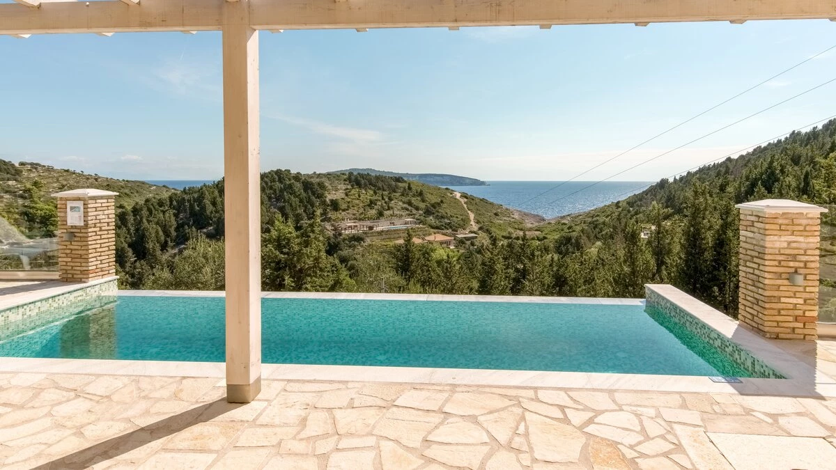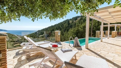 A wonderfully comfortable luxury villa in Lefkada, with magnificent sea views from its secluded seaf... -