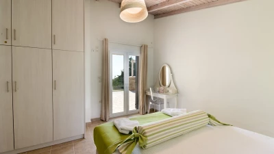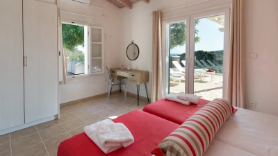 Villa Amalia is a bright and welcoming property in the south of Paxos, ideally designed for couples or small families. The villa includes spacious living and dining areas, alongside a fully-equipped kitchen, decorated for a home-away-from-home feel. There are two bedrooms in the property, a double and a twin, each paired with its own en suite shower room.