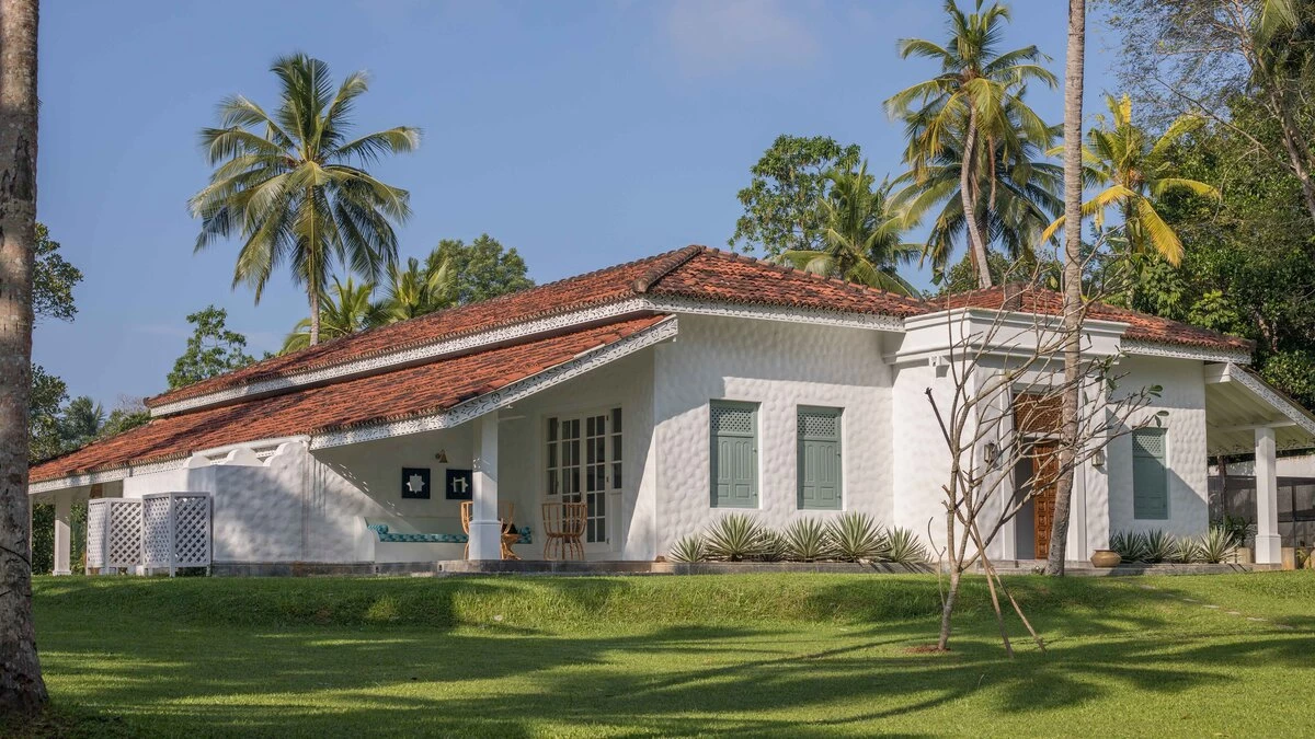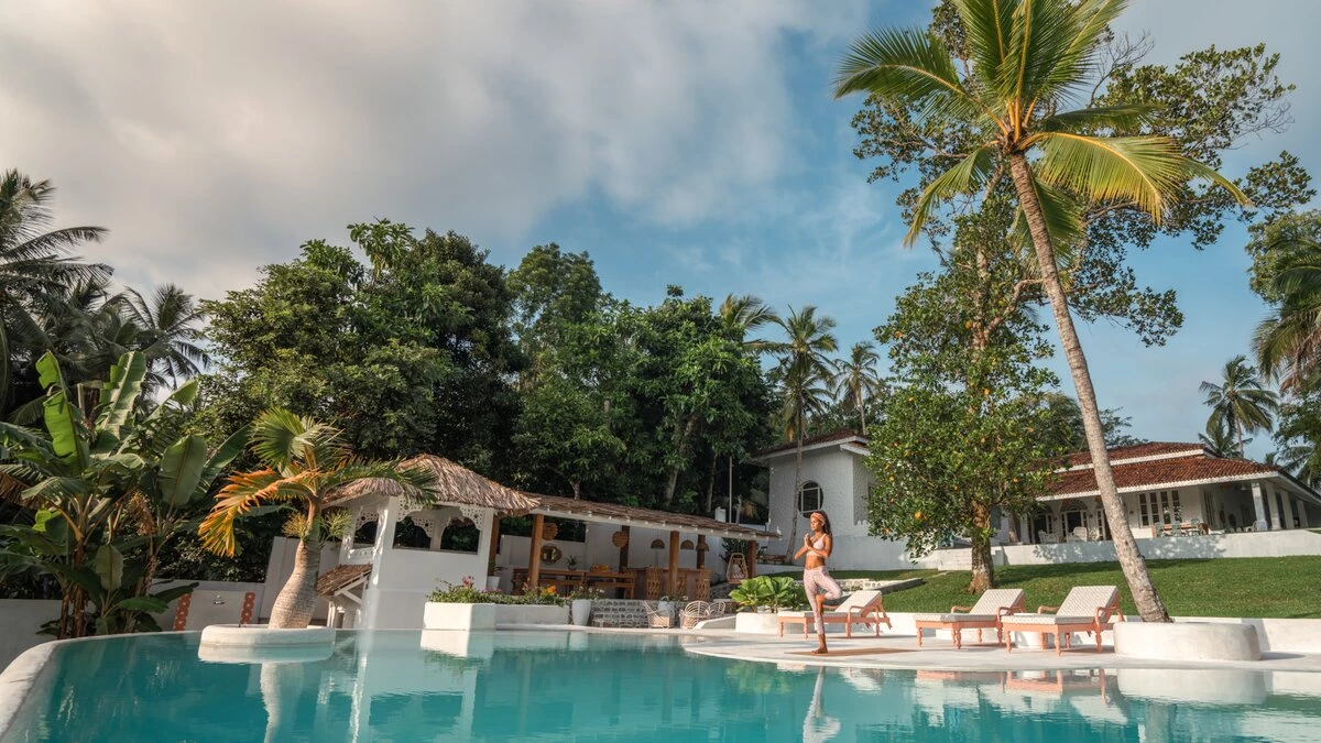The villa contains four en suite bedrooms, all of which include are air conditioned and contain cooling ceiling fans. Three of the bedrooms are king-sized, with the last containing a cosy set of twin beds, with an additional cloakroom in addition to the four ensuites as well. Villa Amethyst’s living room is spacious with very high ceilings, giving an open sense of airiness to the room and just outside peacefully sits an artfully designed veranda where you can lounge on the additional seating spaces as you look out over the far-reaching Sri Lankan countryside. The villa is fully staffed and contains its own private yoga studio so that you can relax and feel properly pampered. With its excellent in-house chef, you can dine in luxury, outside in one of the beautiful outdoor dining spaces under the terrace or pergola.