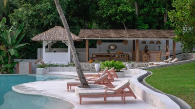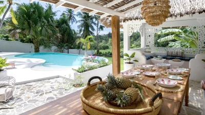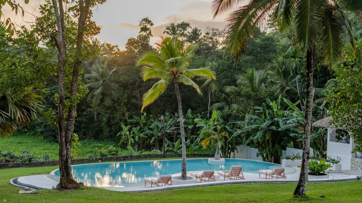 The property also contains two acres of tranquil garden space, all filled with the calming songs of birds and tropical wildlife. The garden contains a large swimming pool lined with sunbeds as well so that you can relax, and with the beach just a five-minute walk away as well, this villa is not only picture perfect, but it is also in the perfect location.
