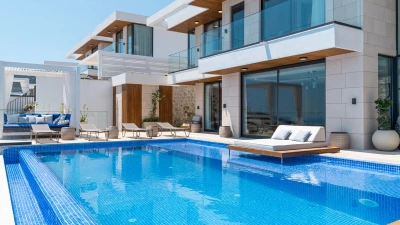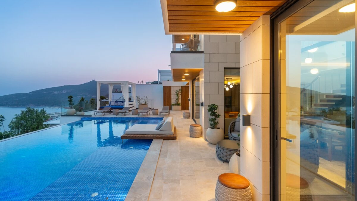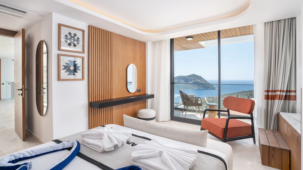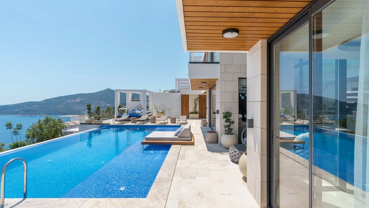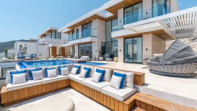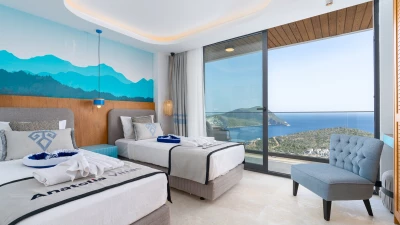 Perched on a picturesque hillside in Kalkan, Turkey, Villa Anka offers an unparalleled retreat for families and groups seeking modern comforts and breathtaking vistas. This spacious five-bedroom haven is part of an exclusive complex of four villas, boasting expansive contemporary living areas and well-proportioned bedrooms, each designed to harmonise with the surrounding sea views. With a huge infinity pool as its centrepiece and two dedicated staff members on hand to cater to guests' needs, Villa Anka promises an exceptional stay for up to ten guests.