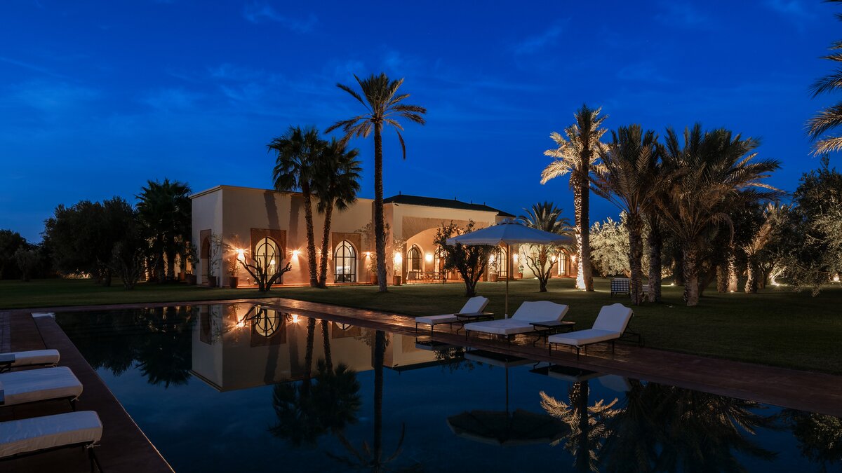 Villa Aradavi is an idyllic six bedroom villa in Marrakech, with extensive lawned gardens, a swimming pool, and stylish modern touches. With chef service included and a great climate year-round, this is the perfect retreat for families or groups of friends, located within easy access of the city centre.