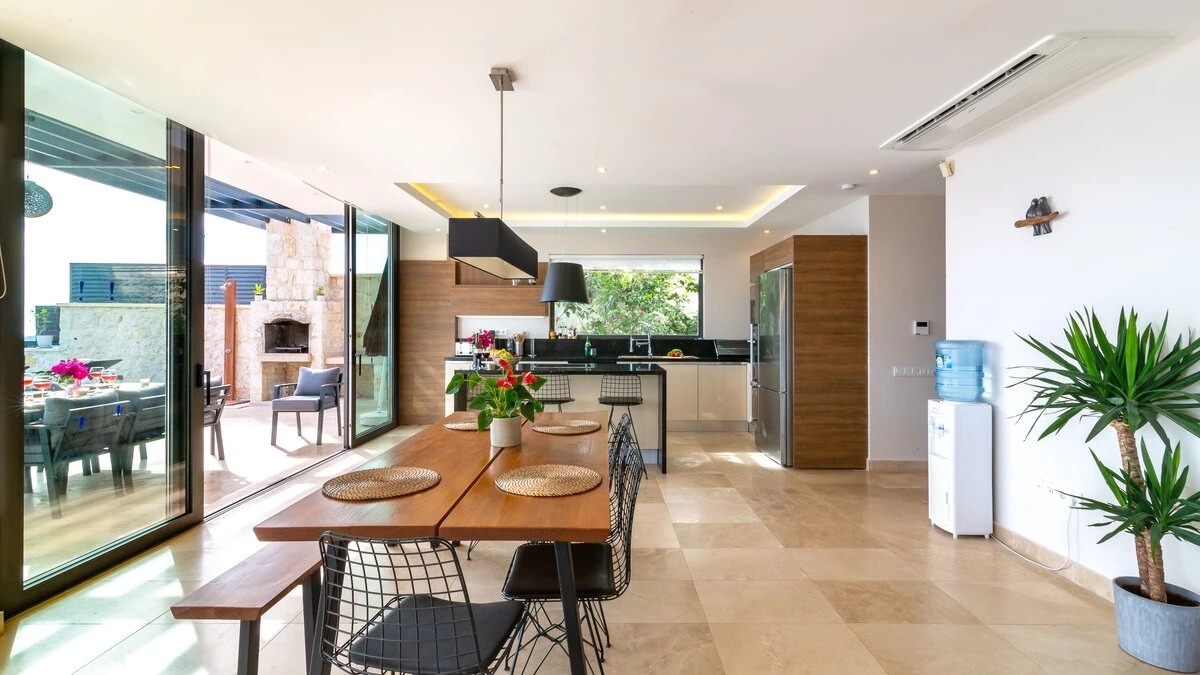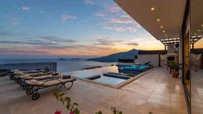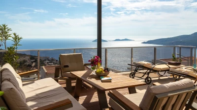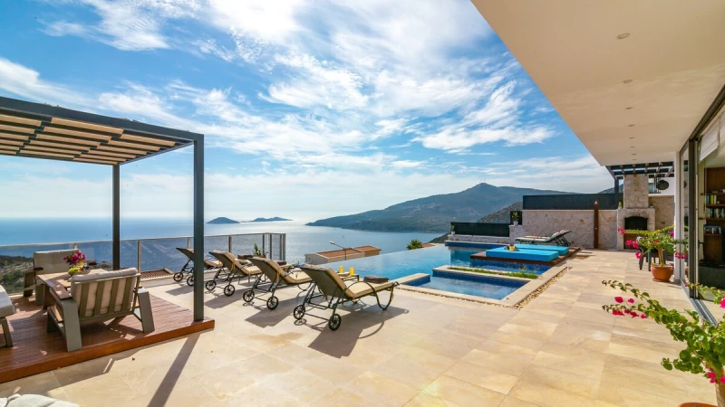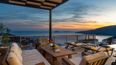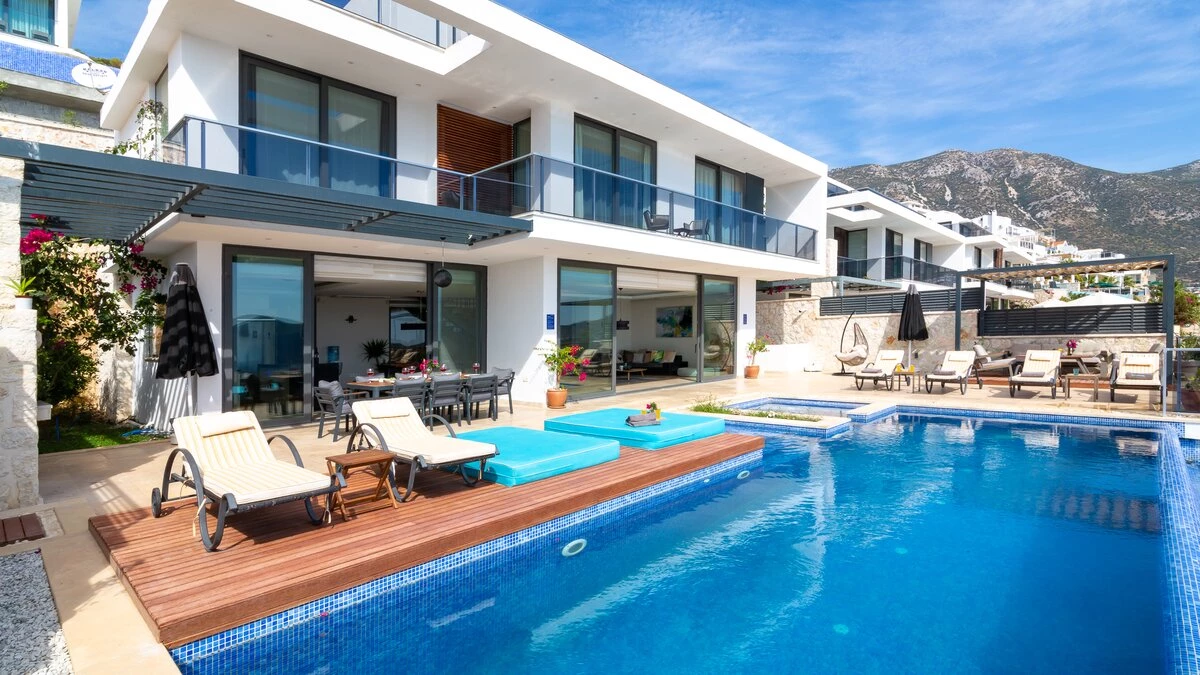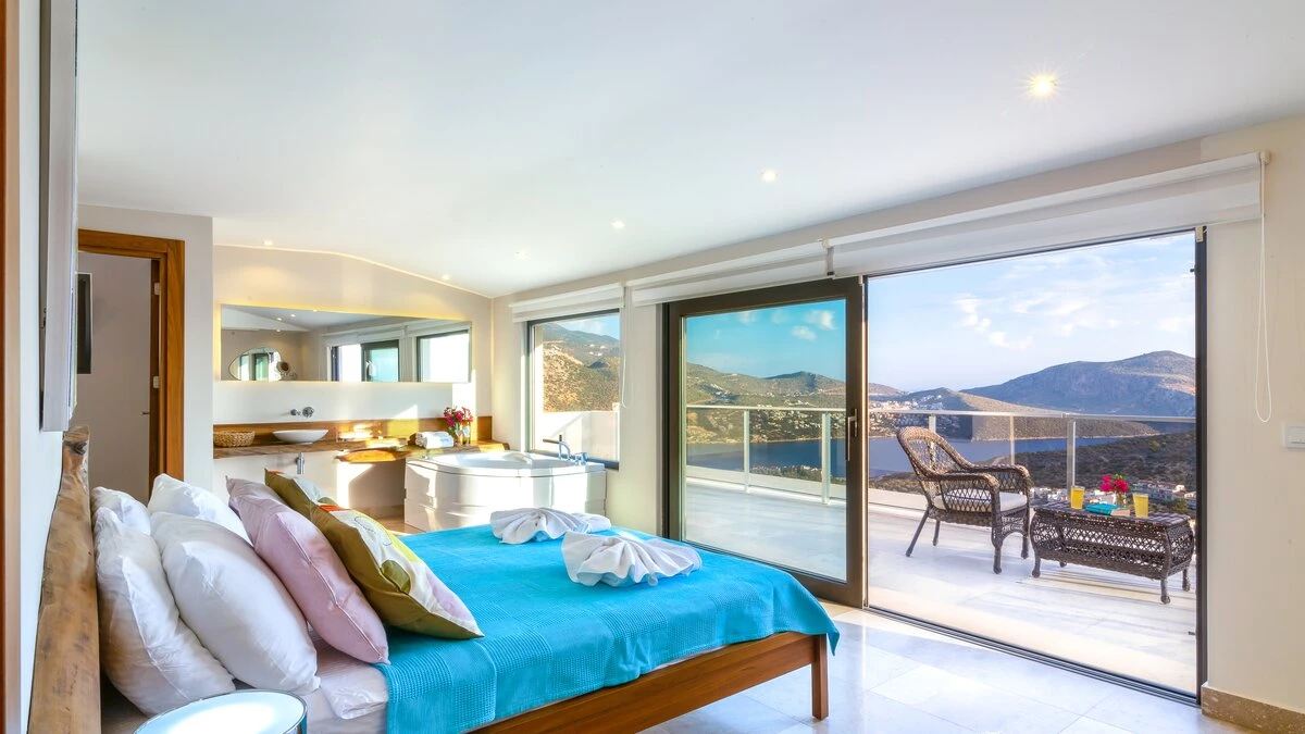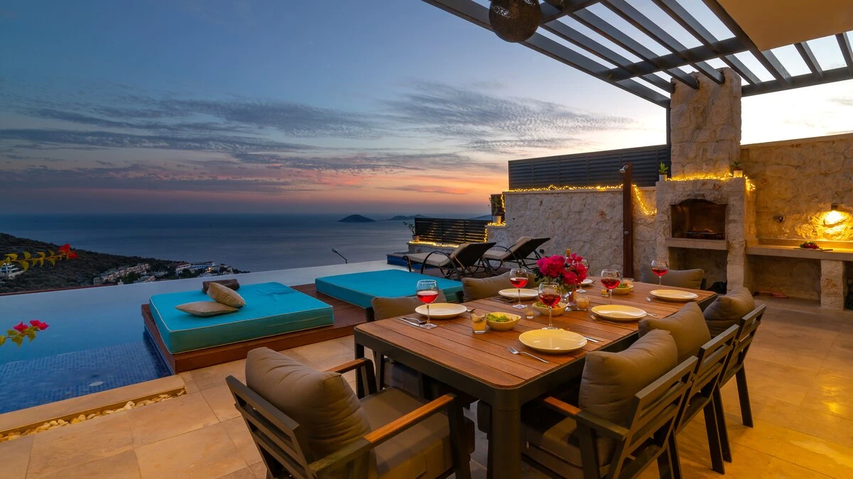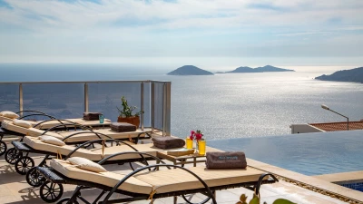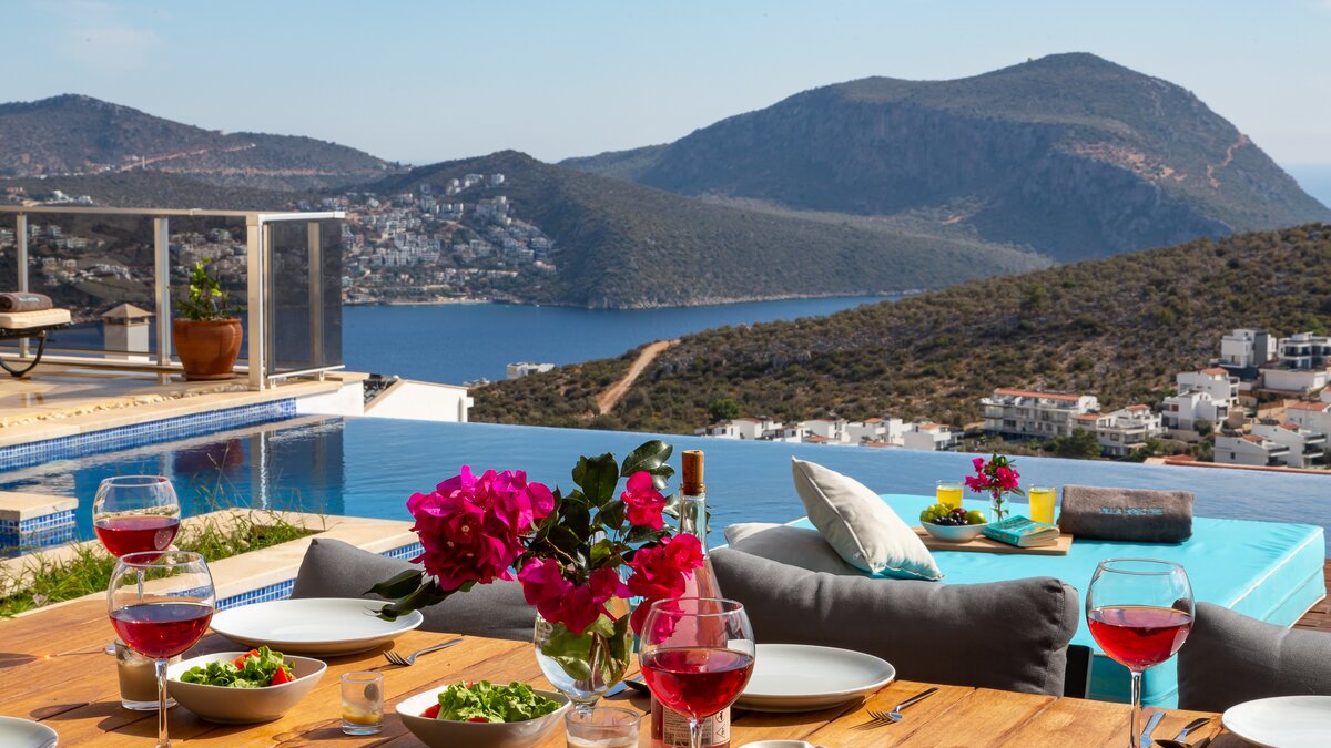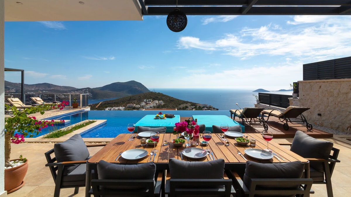 Outside, guests will enjoy warm evenings on the terrace, complete with an al fresco dining area, private pool, lounge area and over-water daybeds. The villa is located just a 25 minute walk or two minute drive from Kalkan, where there are plenty of restaurants, shops and cafes to enjoy. Zest and Kalamar beach clubs are both located less than 3km away.